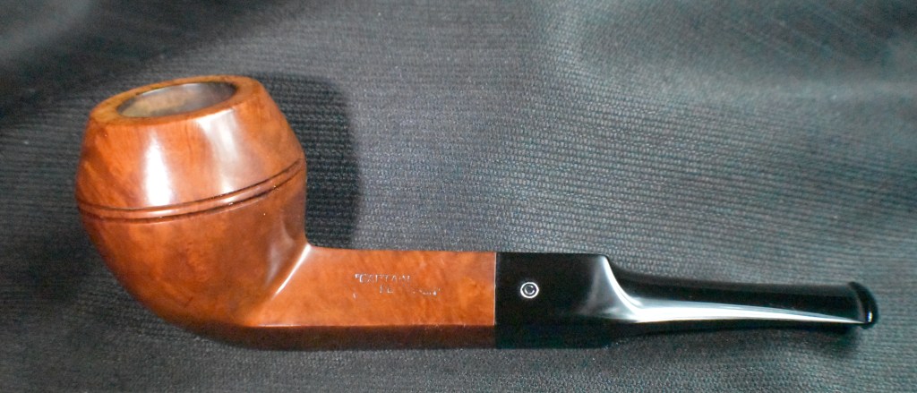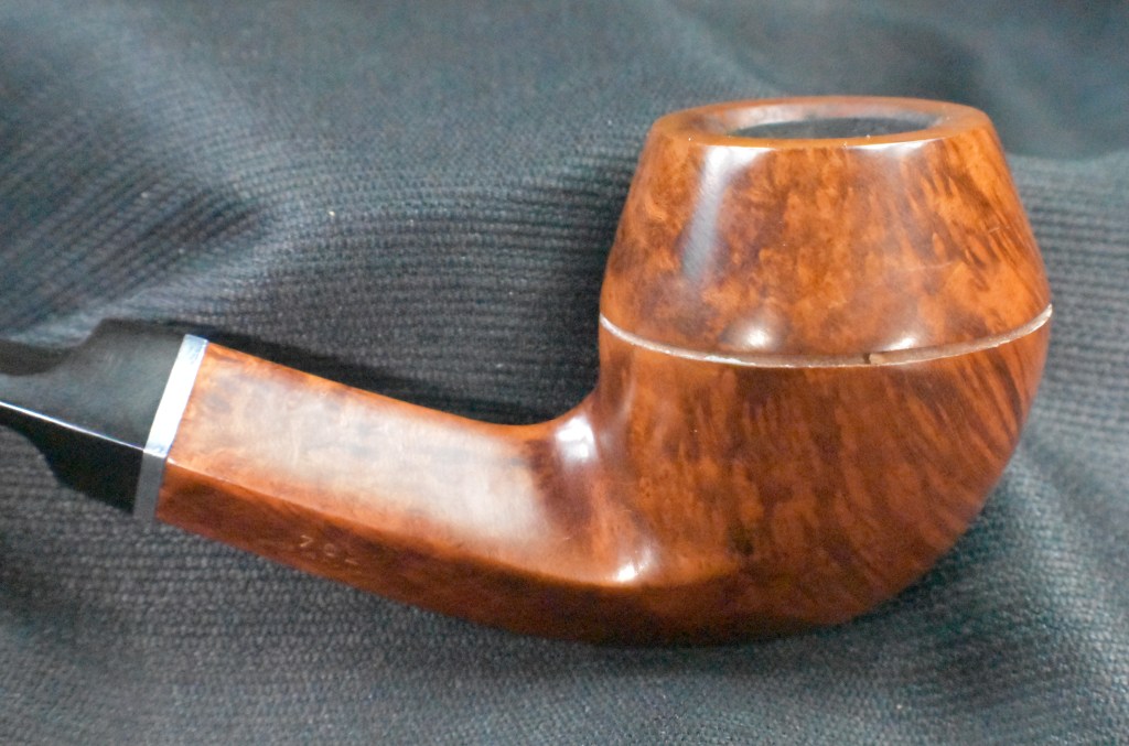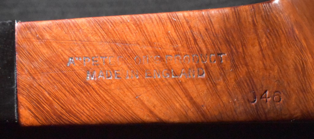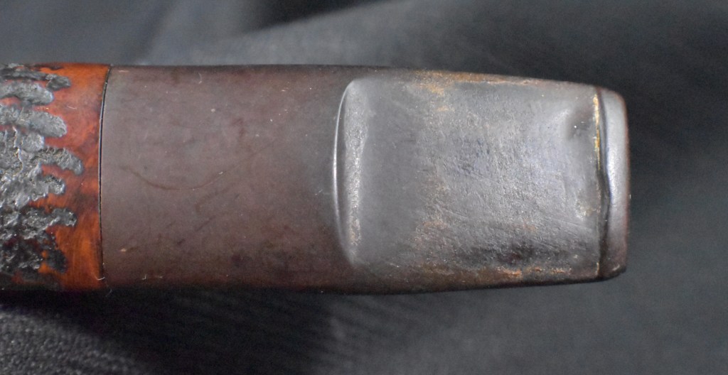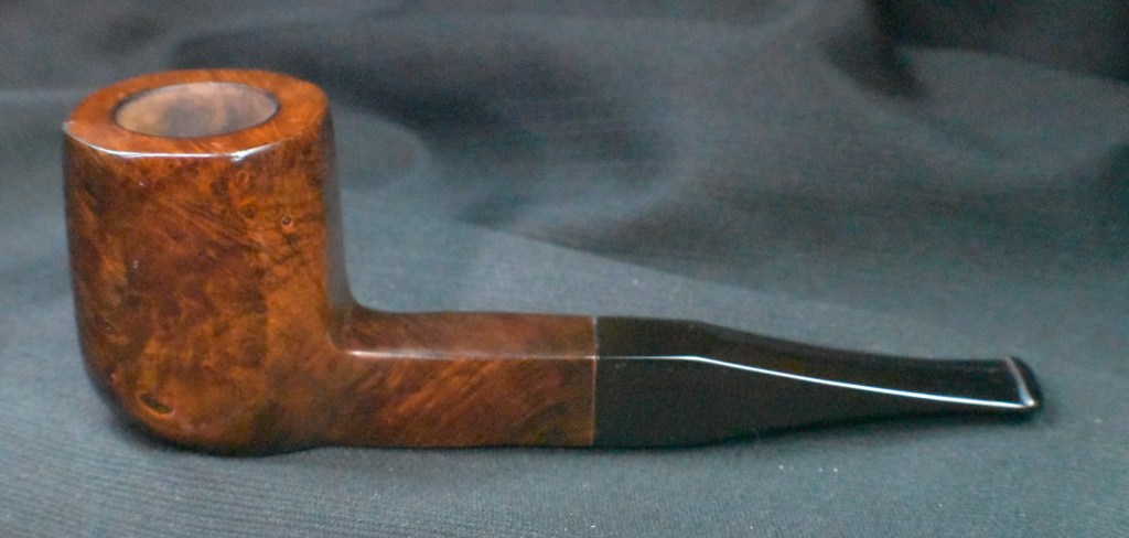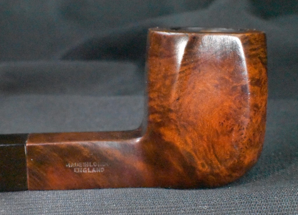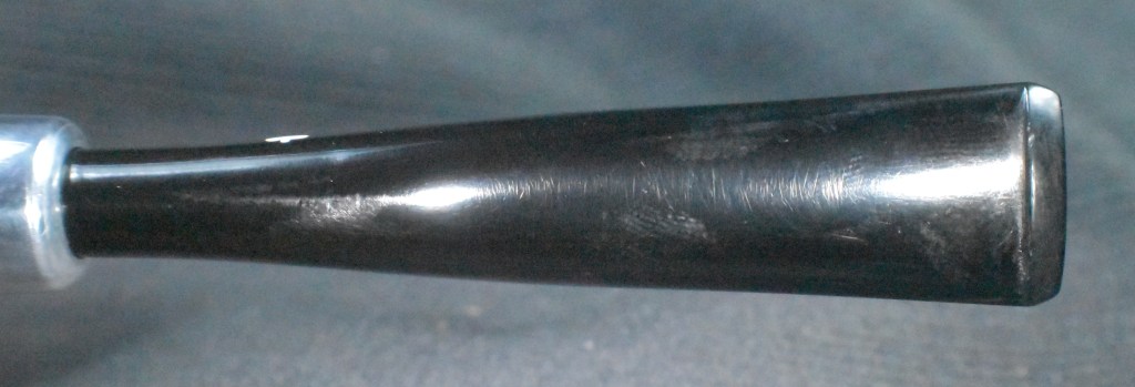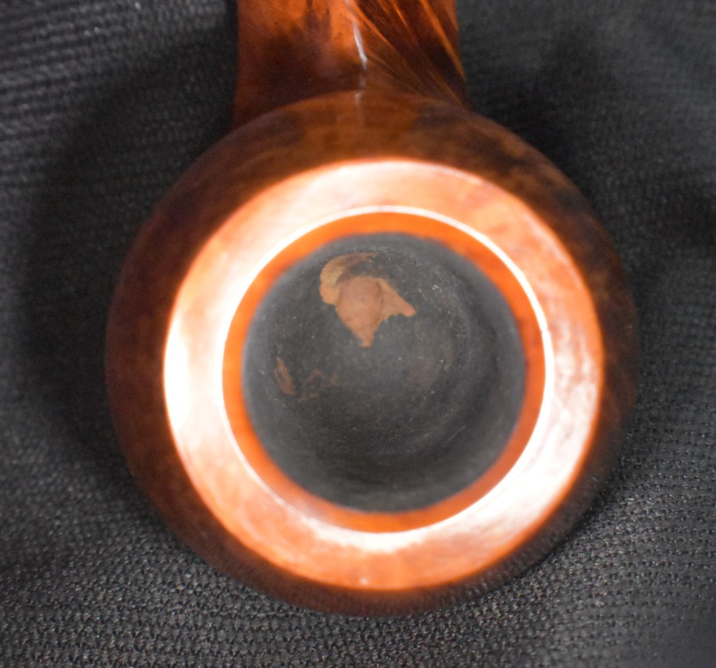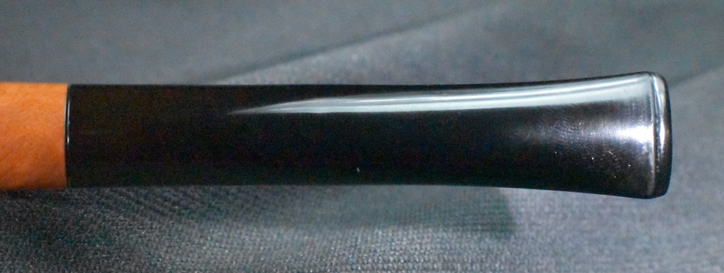 Another clue to the date of this Kaywoodie can be found with the stem logo. According to the Kaywoodie Collector’s Guide from the pipedia.org site, “Early (pre-1936) Kaywoodies had an “elongated” white cloverleaf on the bit, a large fitment, and four-digit shape numbers. The 1936 catalog shows a larger, “fuller” leaf, but lists two-digit shape numbers. Sometime between 1936 and 1947, the better pipes were marked on the bits with a black cloverleaf in a white circle. The white cloverleaf continued on the lesser pipes. However, this was not a consistent convention, as pipes of the same grade could have either type of leaf.” (Collector’s Guide to Kaywoodie Pipes – Pipedia). Again the dates here intricate the 1936-1947 period but show no definitive years.