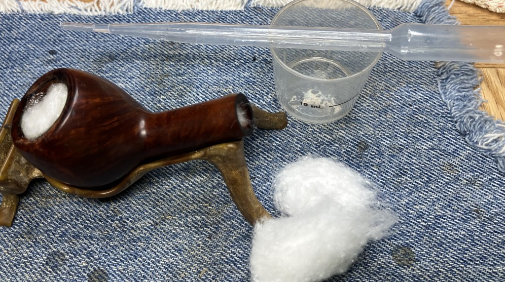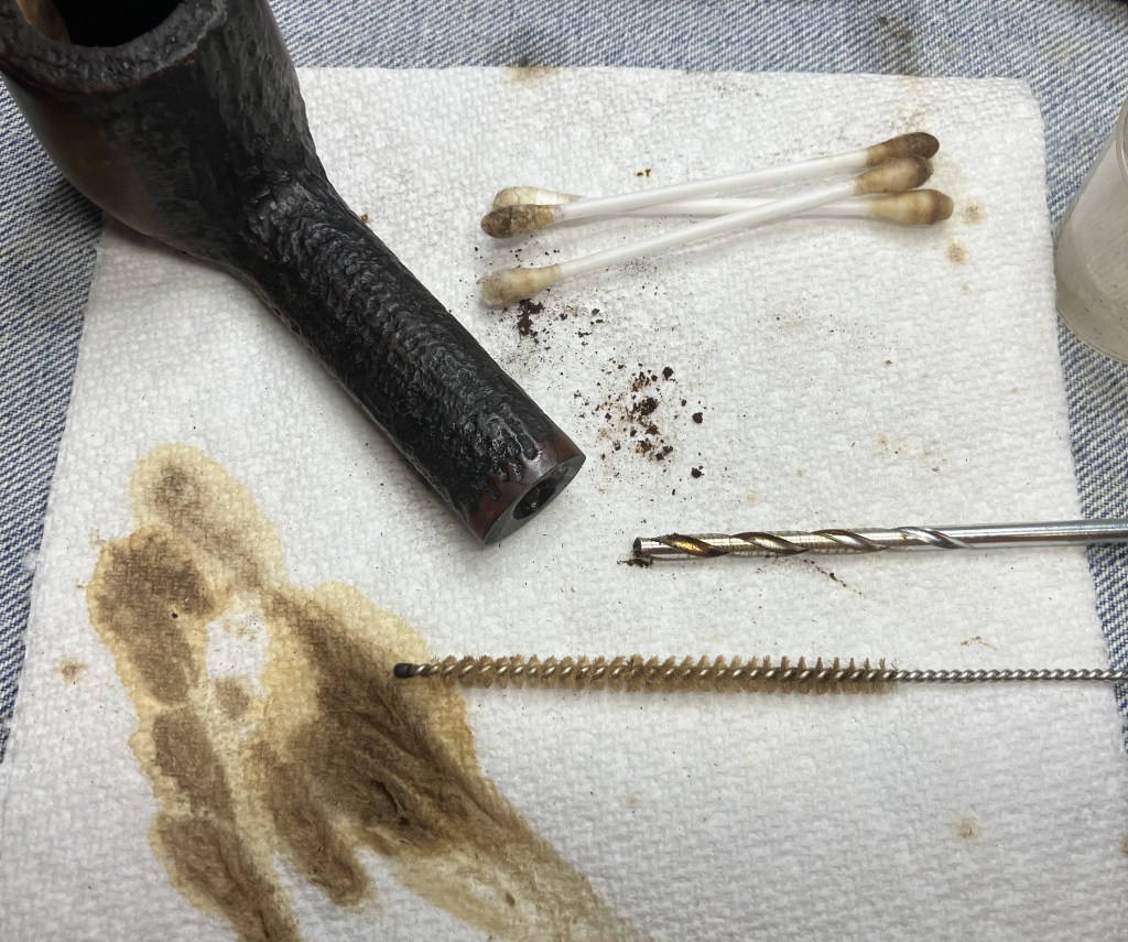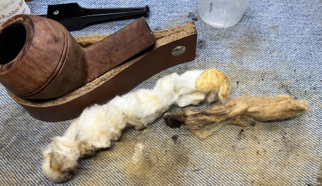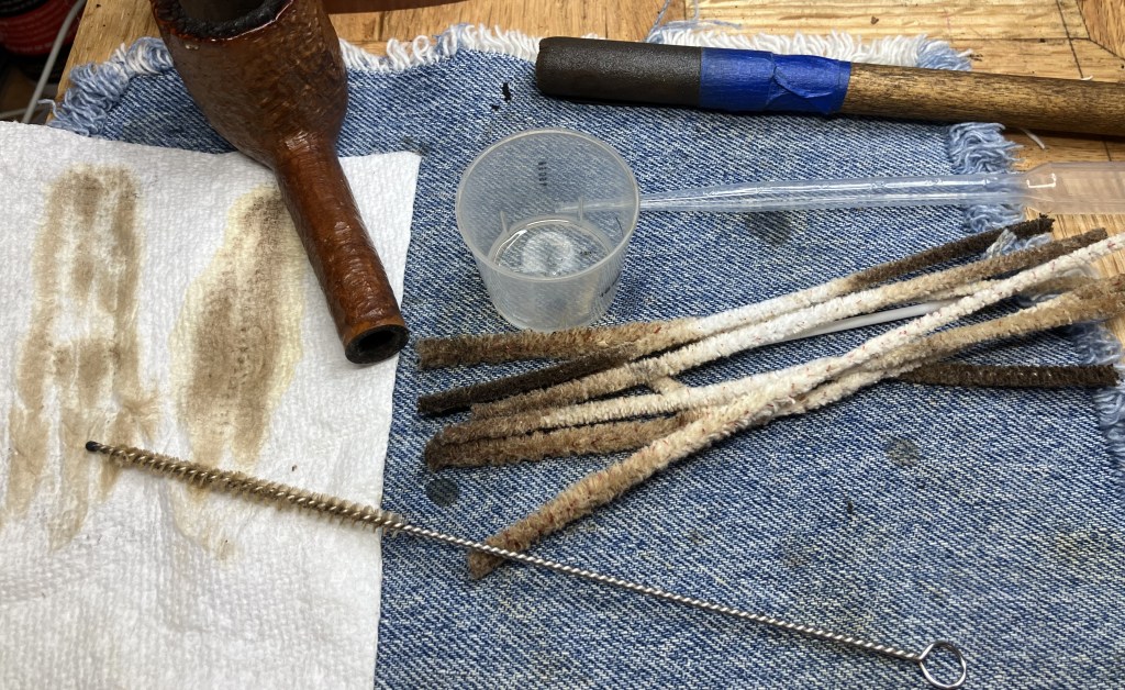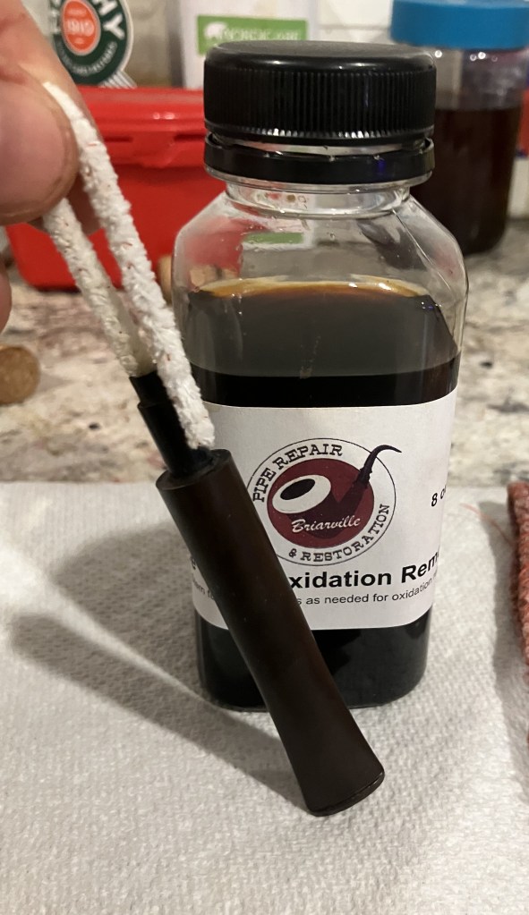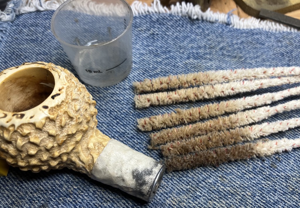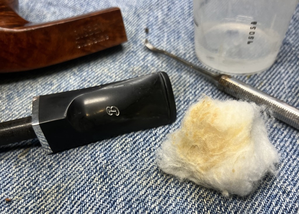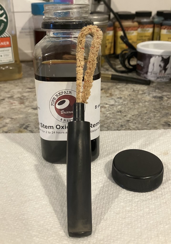 The stummel needed an overnight to fully cure. I turned my attention to the stem. I cleaned it with bristle pipe cleaners and 99% ethyl alcohol.