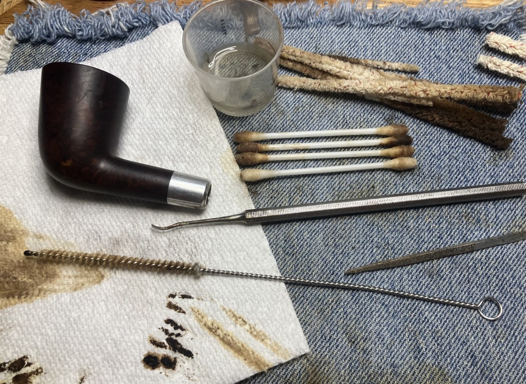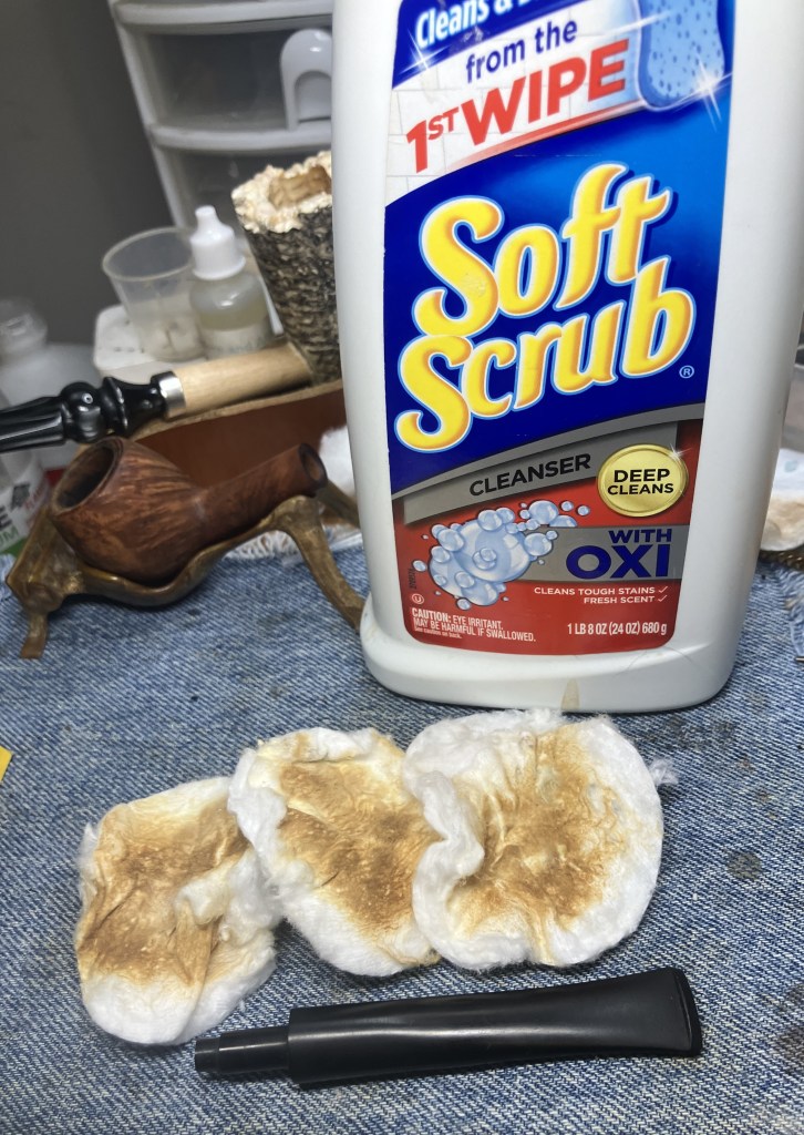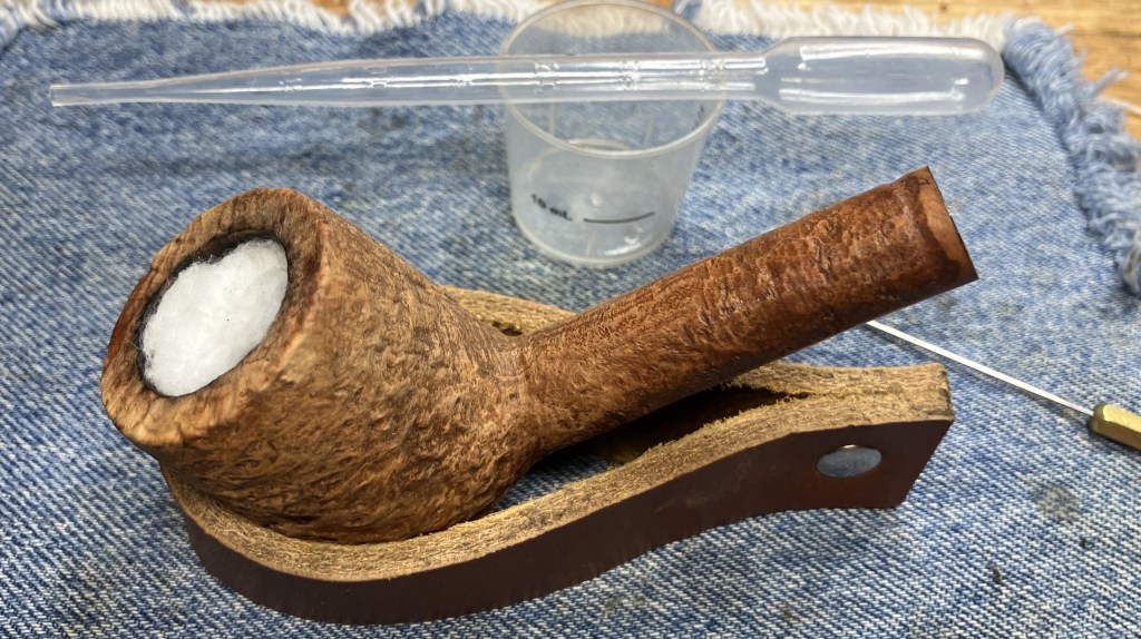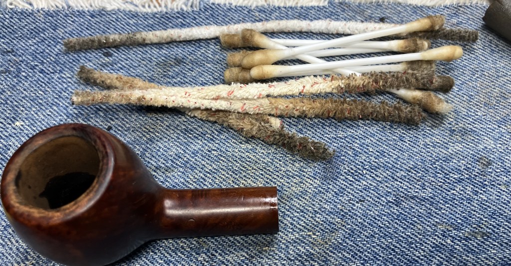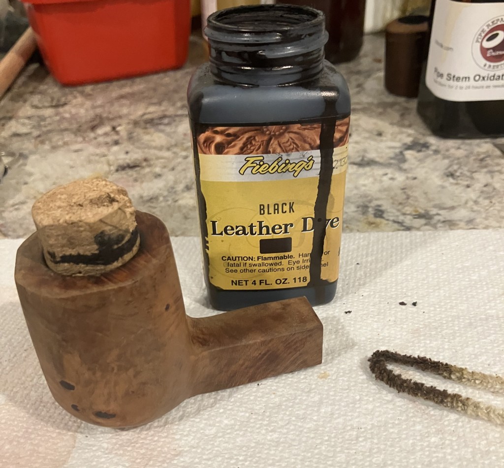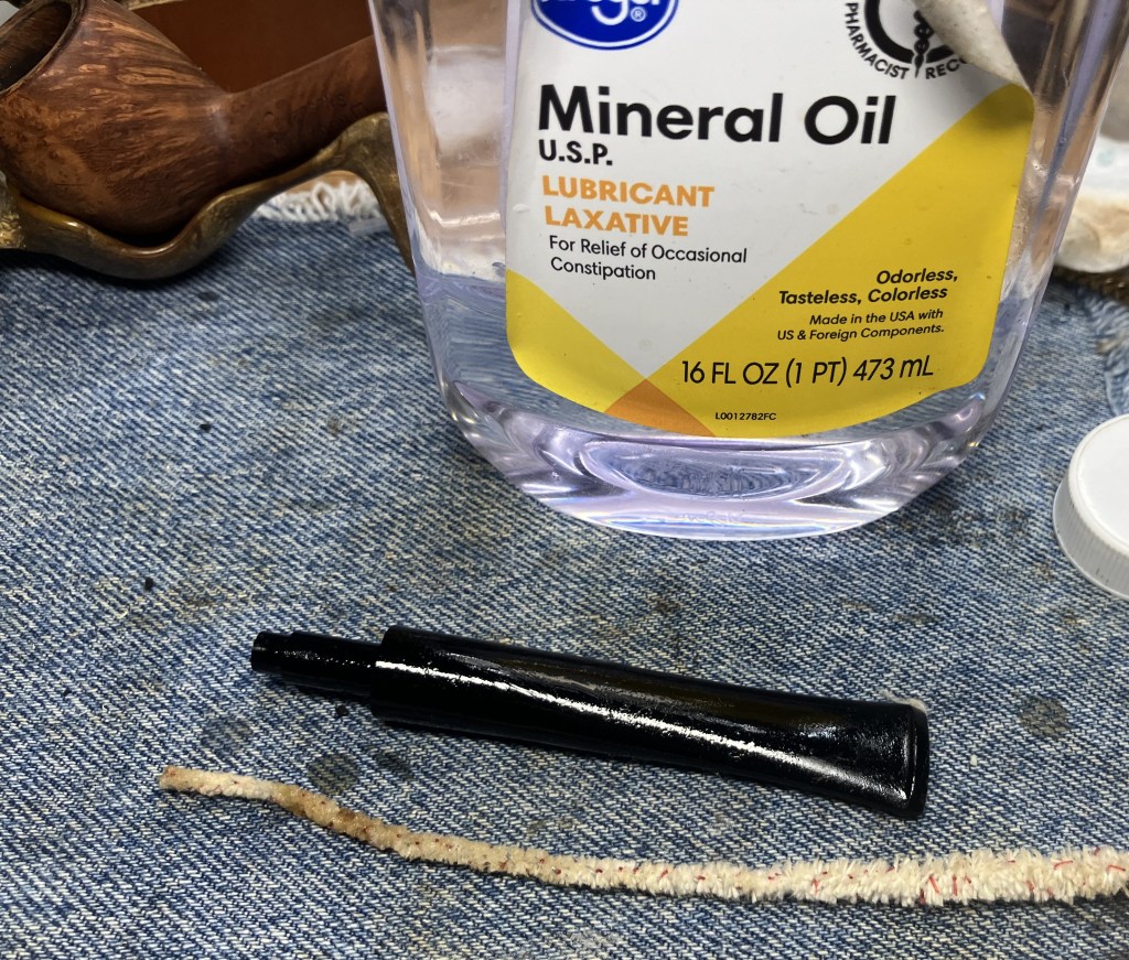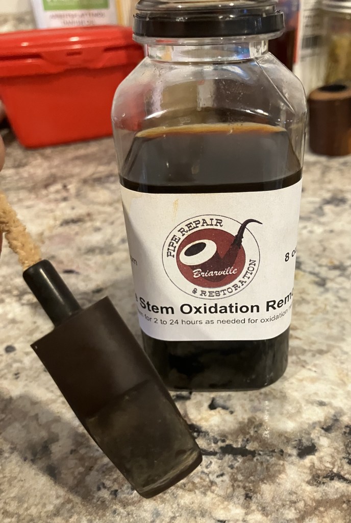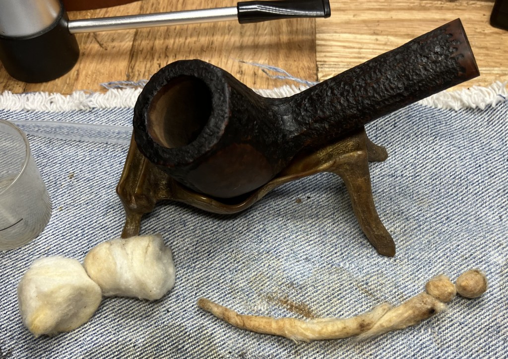 The stummel needed an overnight to fully cure. I turned my attention to the stem. I cleaned it with bristle pipe cleaners and 99% ethyl alcohol.