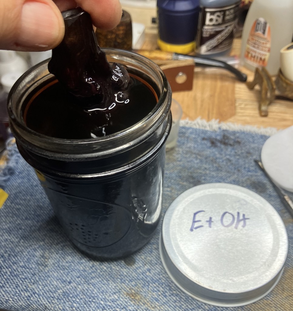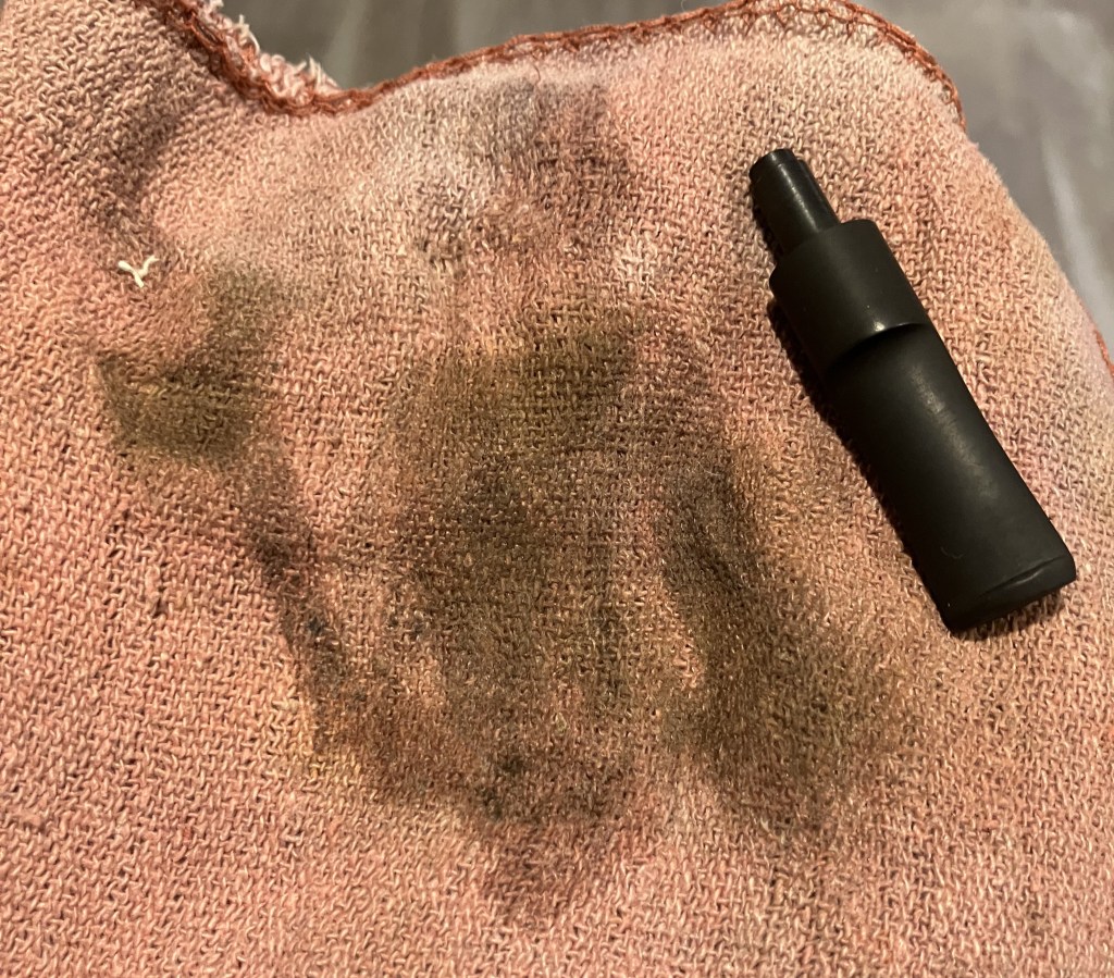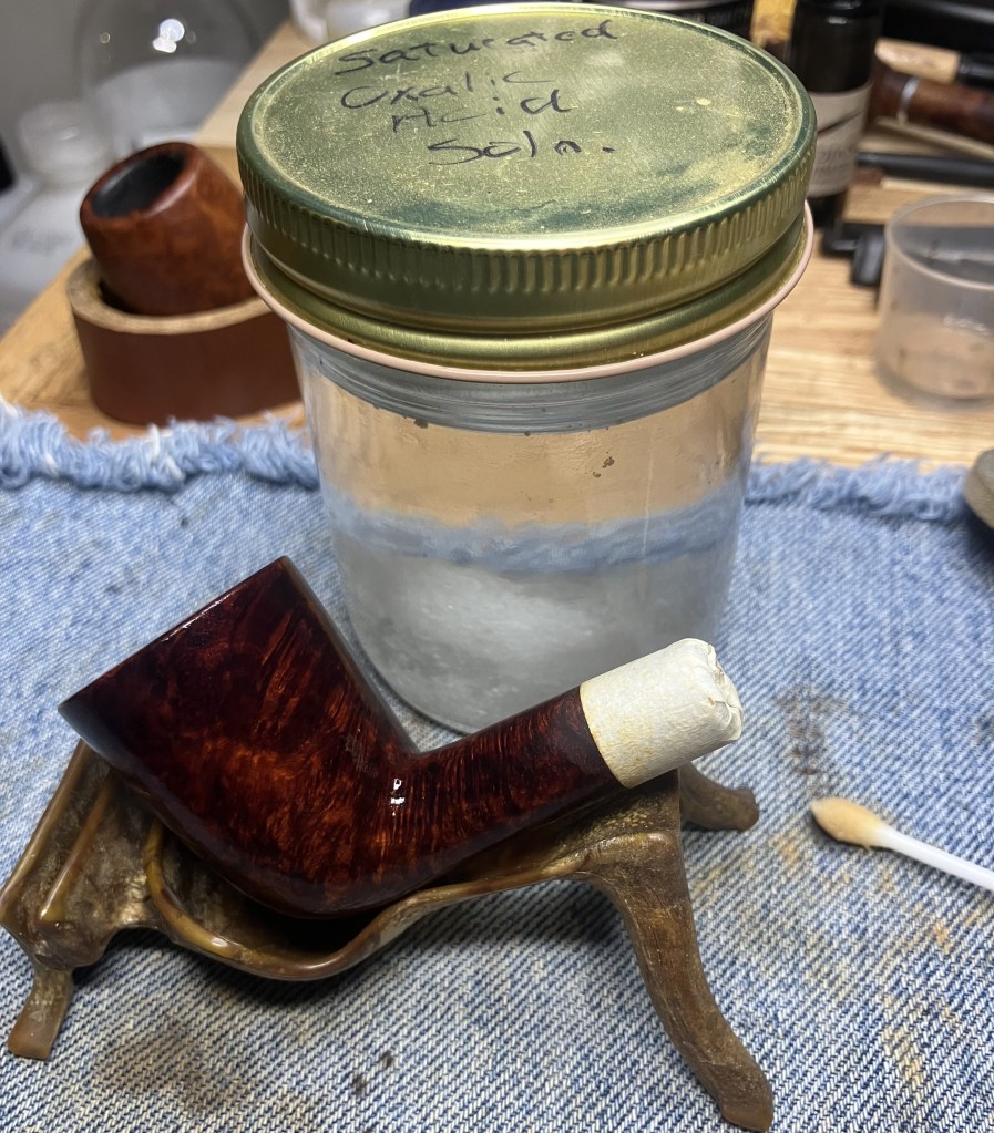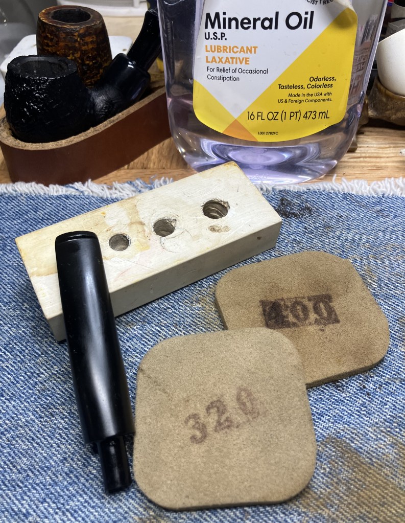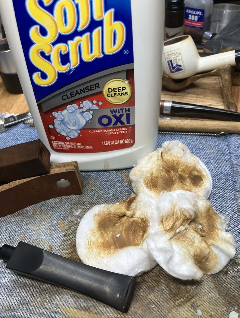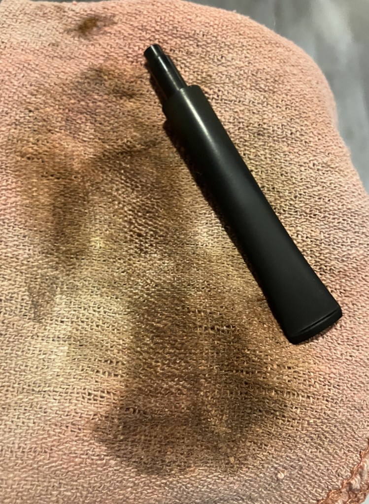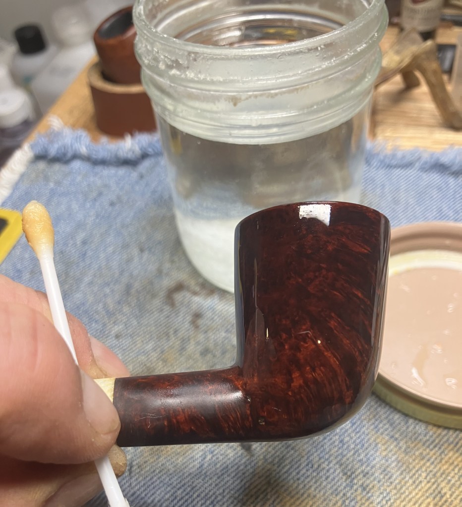 The stummel needed an overnight to fully cure. I turned my attention to the stem. I cleaned it with bristle pipe cleaners and 99% ethyl alcohol.