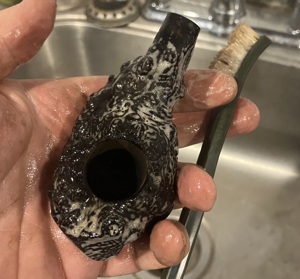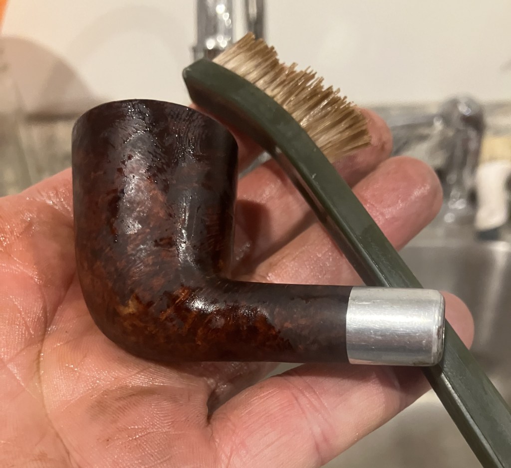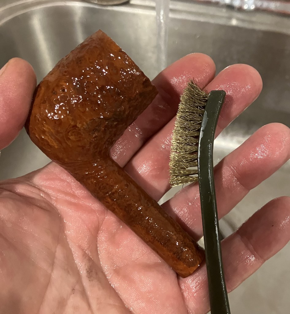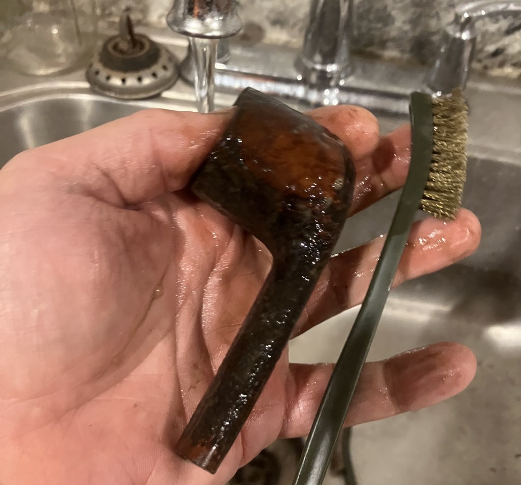 Next, the pipe was taken to the sink for a scrub with warm water and a nylon brush.