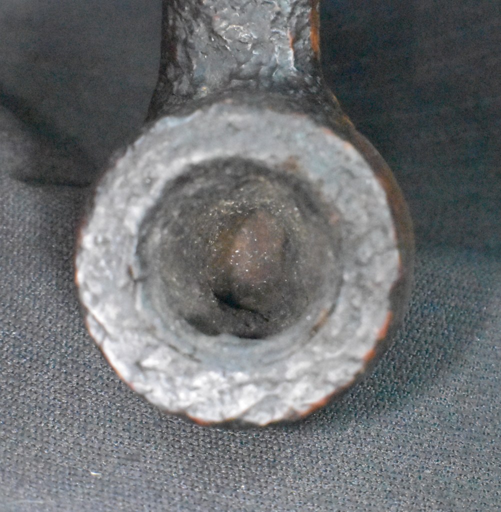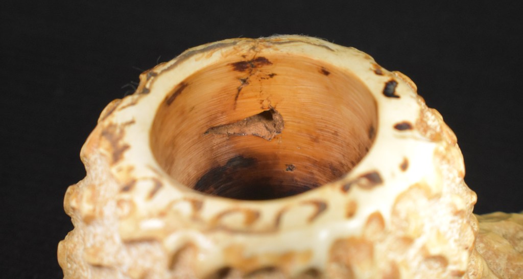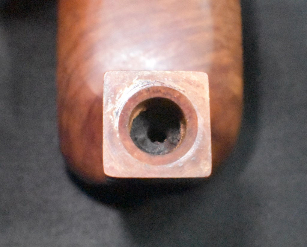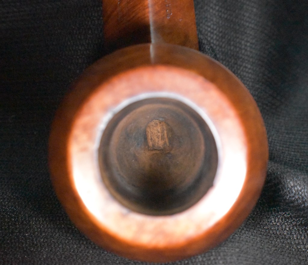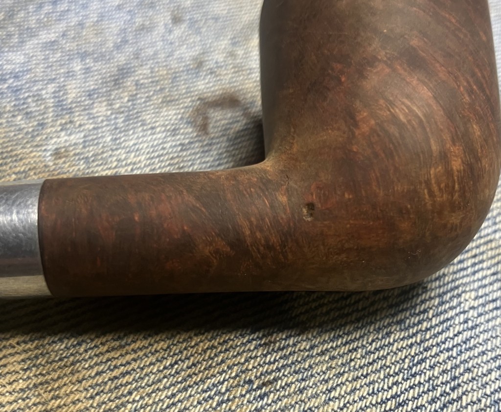 For the most part this looked like a pipe in great condition. The stem was not oxidized, there was no tooth chatter and it aligned correctly when screwed in. The interior of the tobacco chamber had been scraped and sanded and looked good, except for the gaping hole. This hole continued through the side of the stummel. I developed a plan in my mind of how to address this hole: