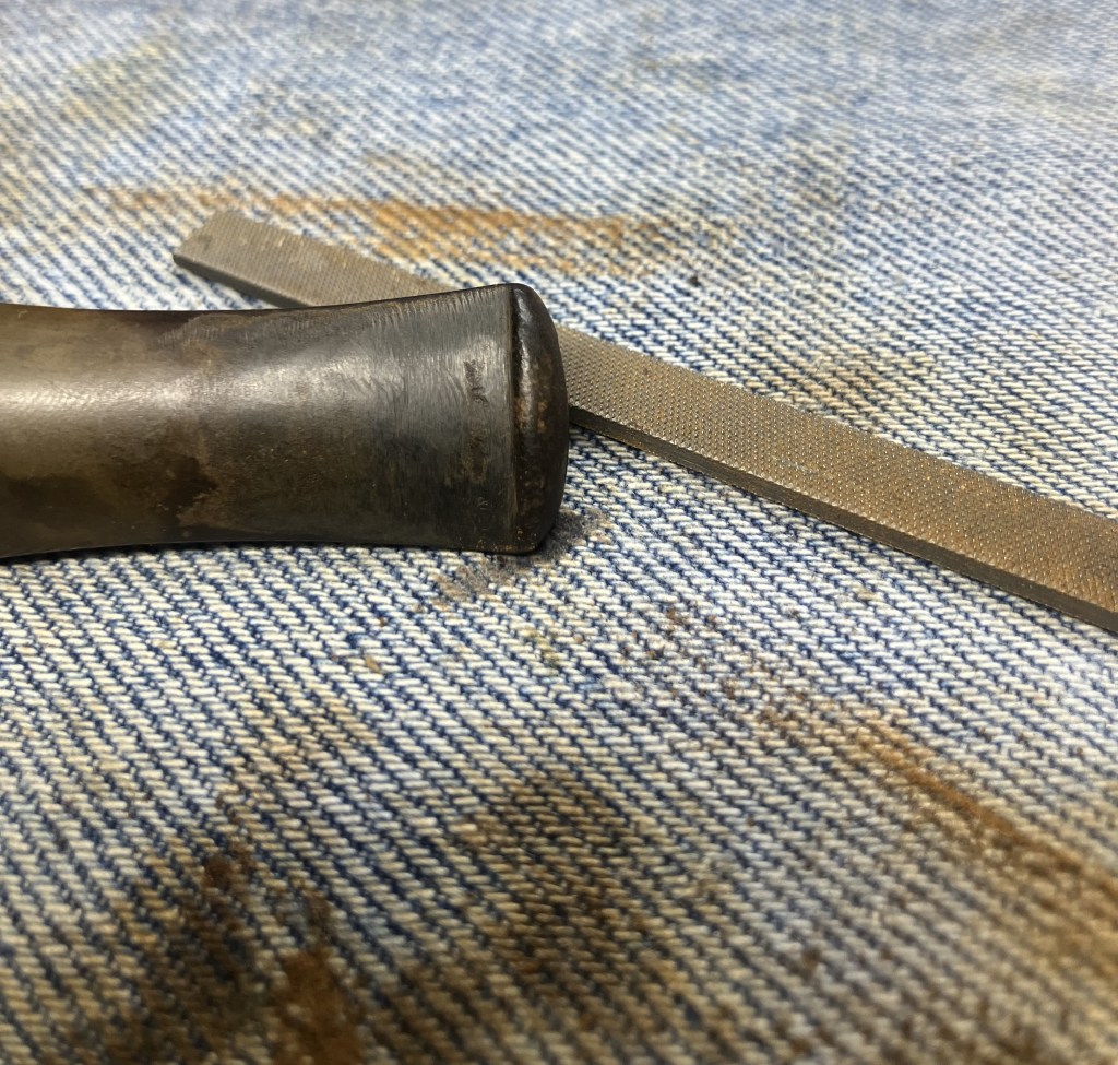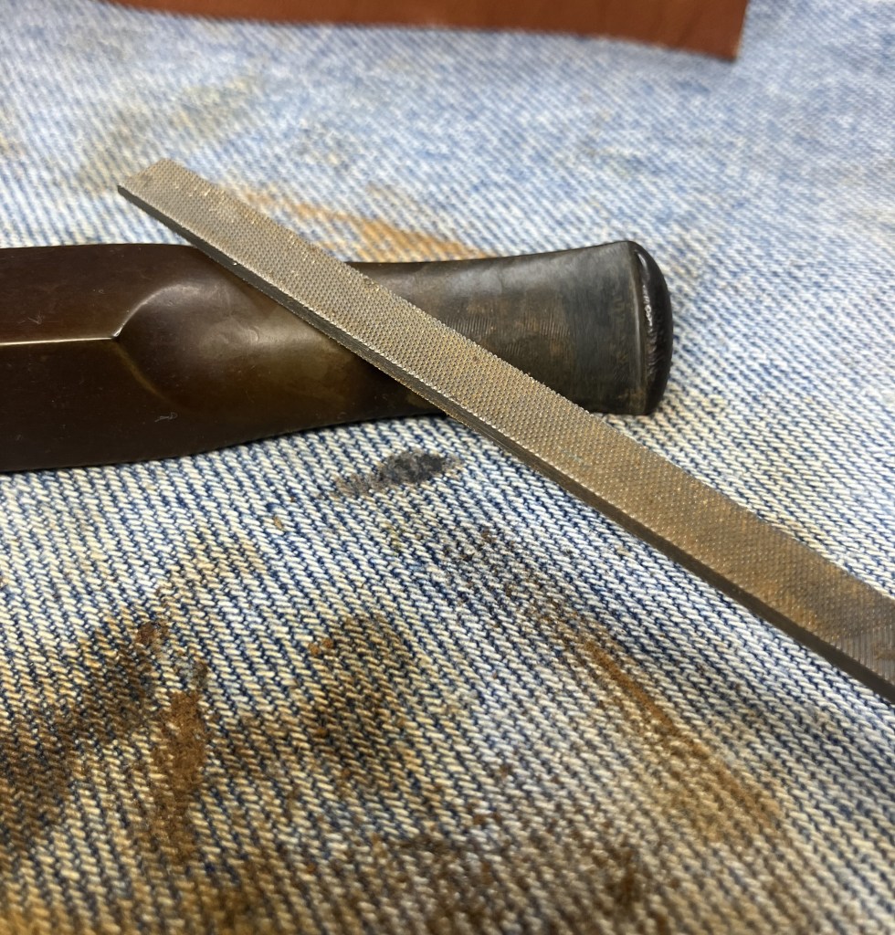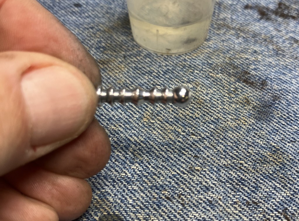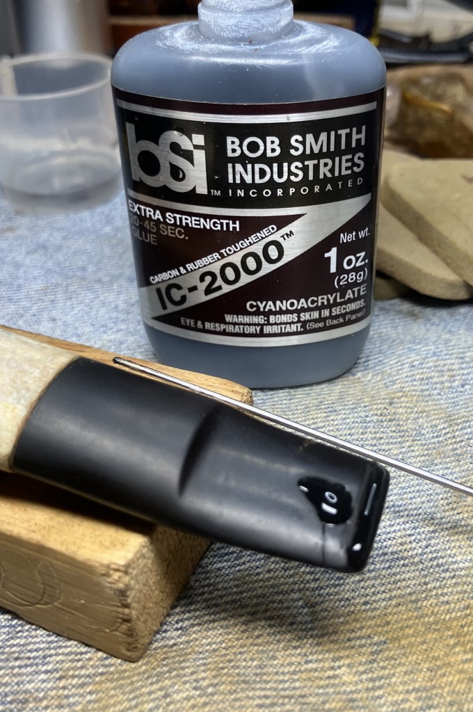 I touched-up the edge of the button with a small flat file and sanded the stem with a 400 grit sanding sponge.
