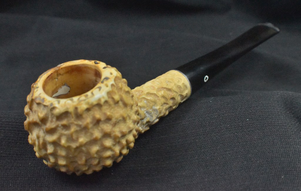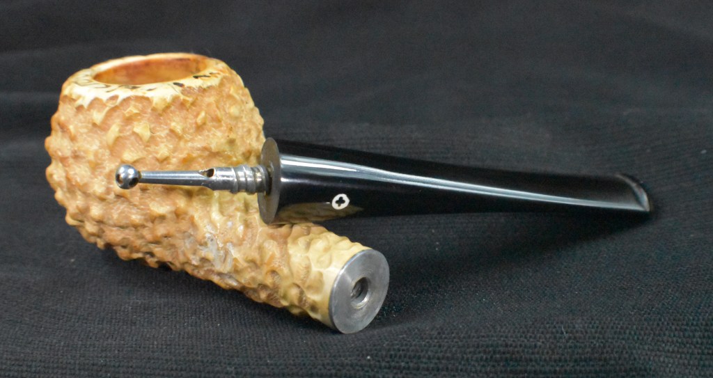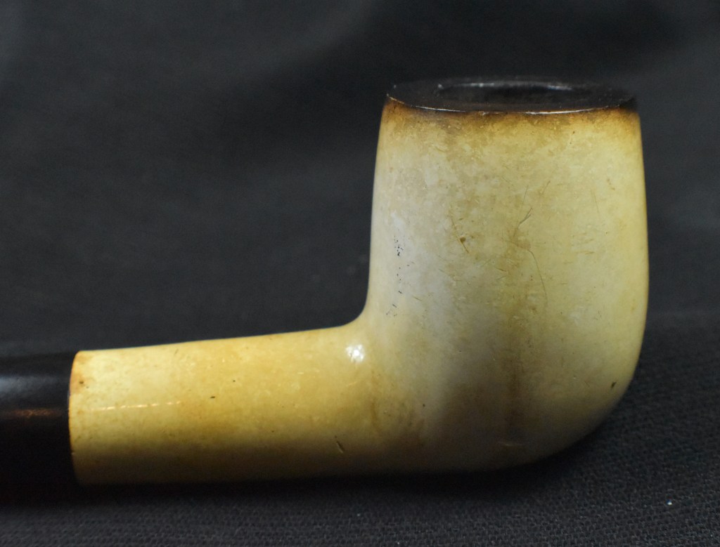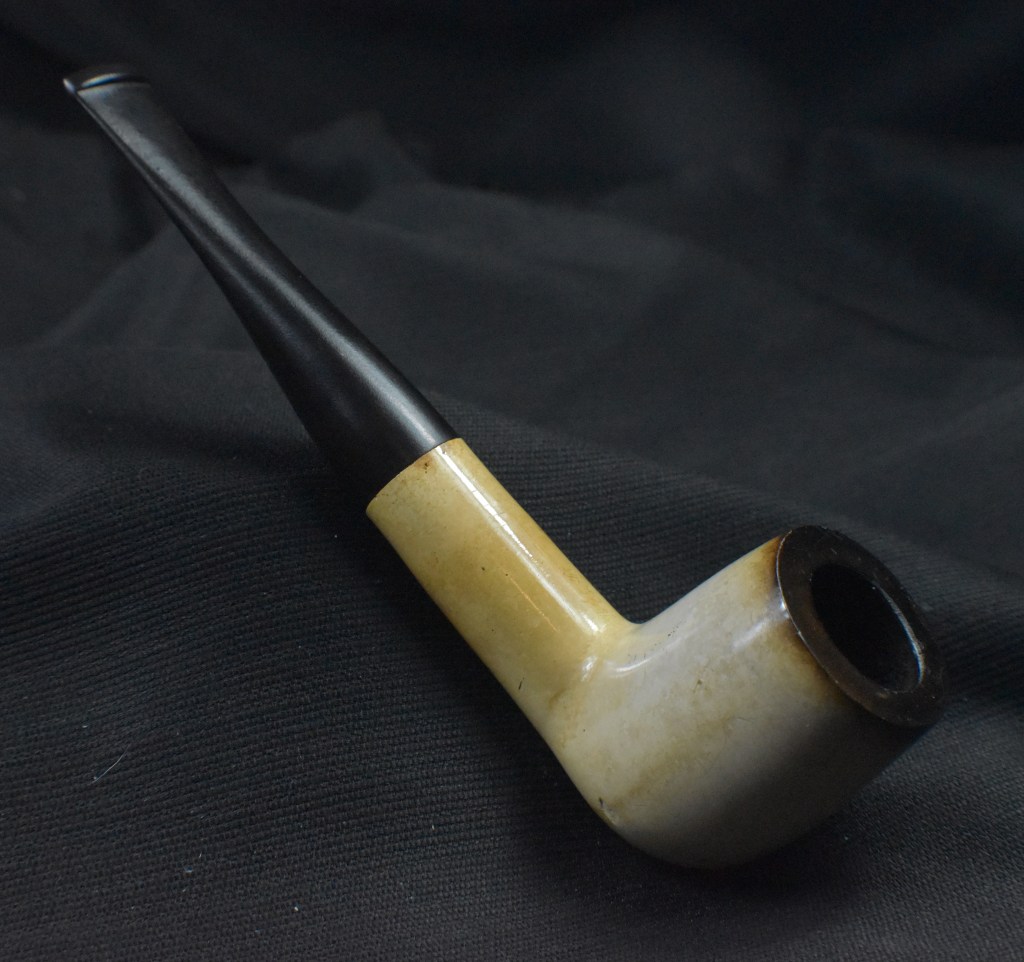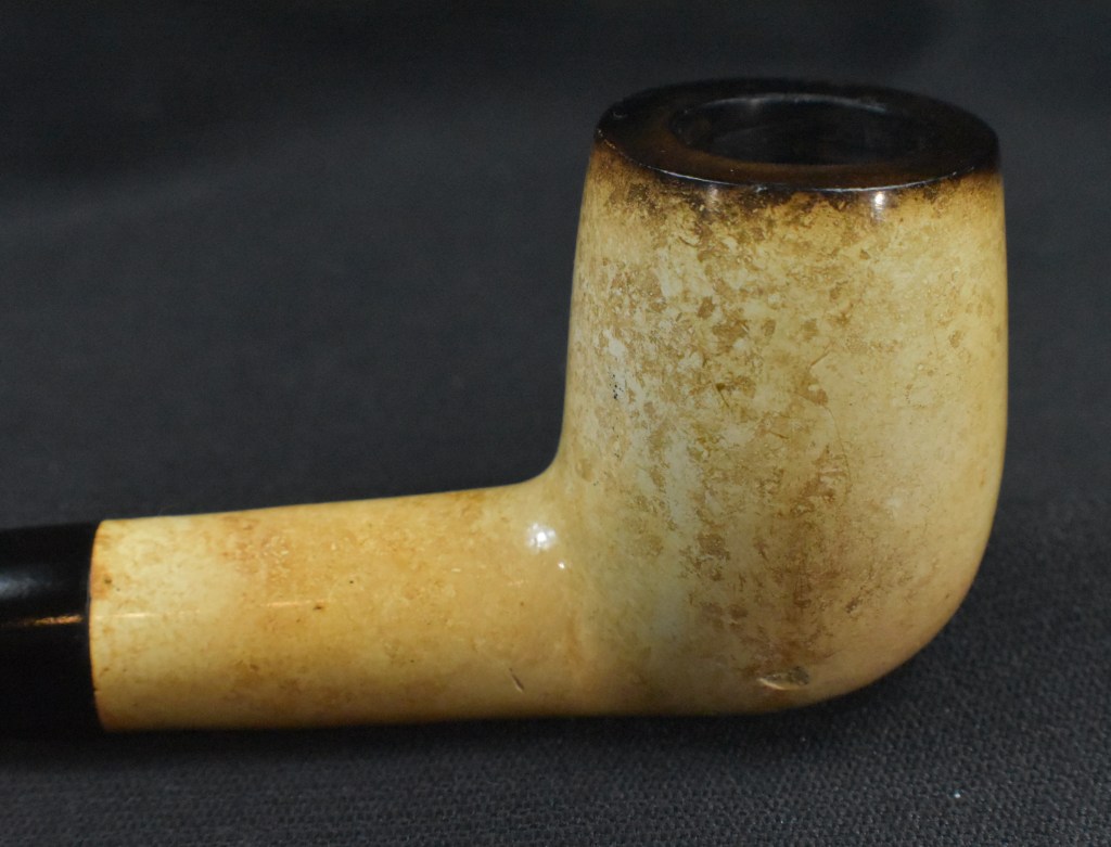 Using the Synchrostem information from pipephil.eu and the logo information from pipedia.org the dates 1936-1947 overlap from both sources. The issue here is that Laxey produced pipes from the “latter 1960’s until 2001” (Laxey Pipes Ltd. – Pipedia). Okay, I have no actual proof that this was a Laxey carved piece of meerschaum and the latter 1960s are 20 years from the stated time of Kaywoodie’s black cloverleaf in a white circle. This leads to some conjecture on my part. I still believe this pipe to be a piece of African meerschaum, likely manufactured by Laxey perhaps fitted with a stash of older bits provided by Kaywoodie in the late 1960s.