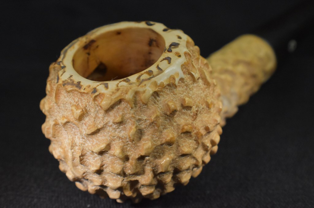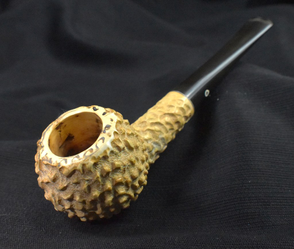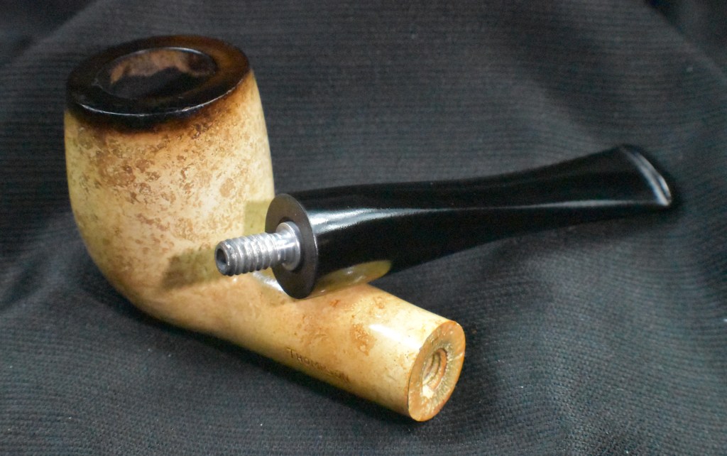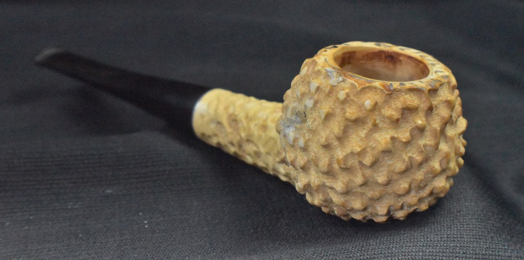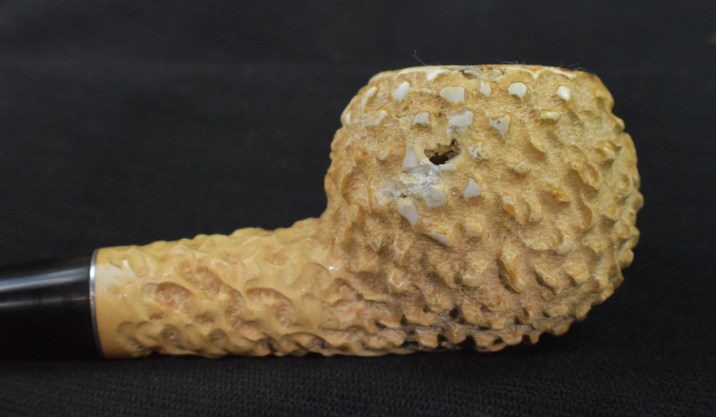 Using the Synchrostem information from pipephil.eu and the logo information from pipedia.org the dates 1936-1947 overlap from both sources. The issue here is that Laxey produced pipes from the “latter 1960’s until 2001” (Laxey Pipes Ltd. – Pipedia). Okay, I have no actual proof that this was a Laxey carved piece of meerschaum and the latter 1960s are 20 years from the stated time of Kaywoodie’s black cloverleaf in a white circle. This leads to some conjecture on my part. I still believe this pipe to be a piece of African meerschaum, likely manufactured by Laxey perhaps fitted with a stash of older bits provided by Kaywoodie in the late 1960s.