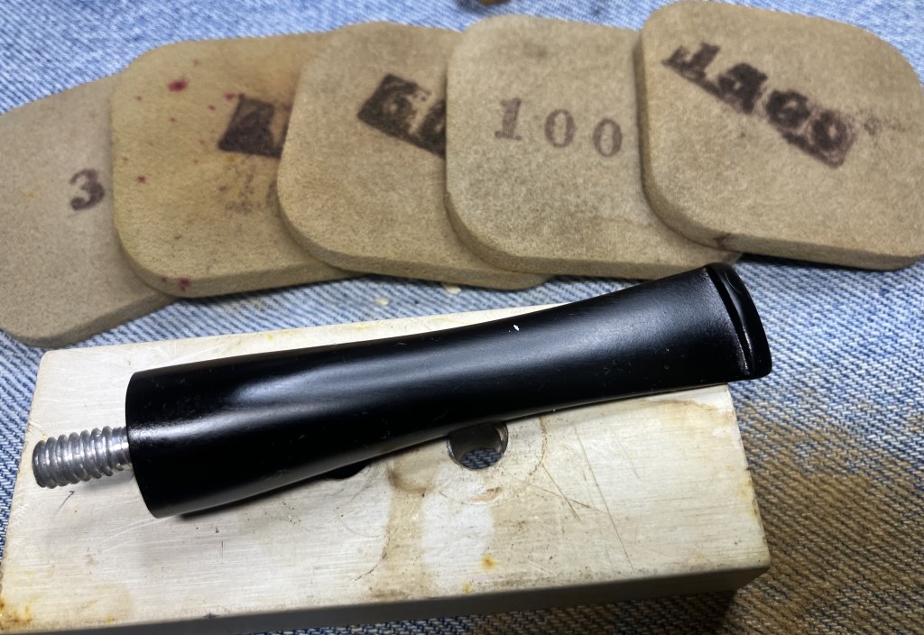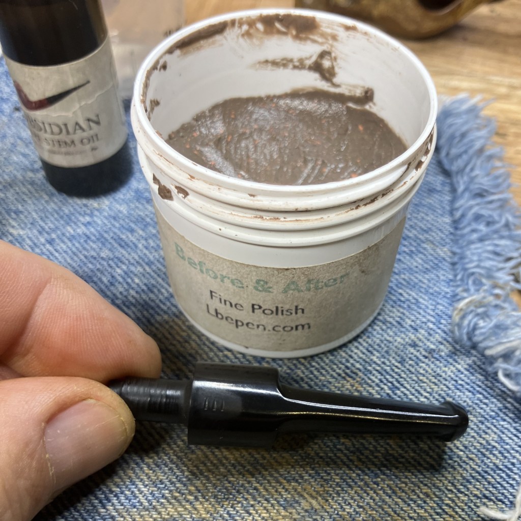 The buffing helped but I thought that my buffing skills could use a bit more work. I used Before and After Fine and Extra Fine Polish on a soft cloth to hand polish the stem.