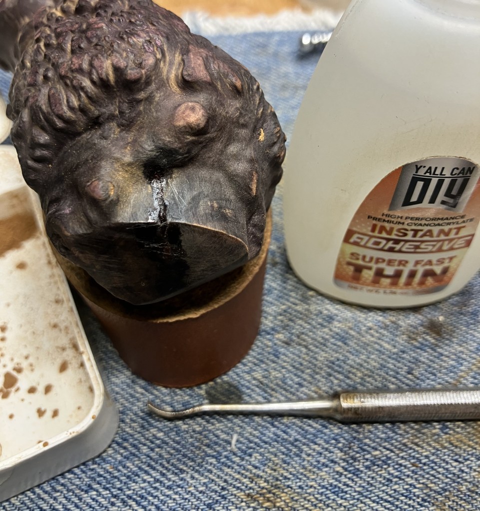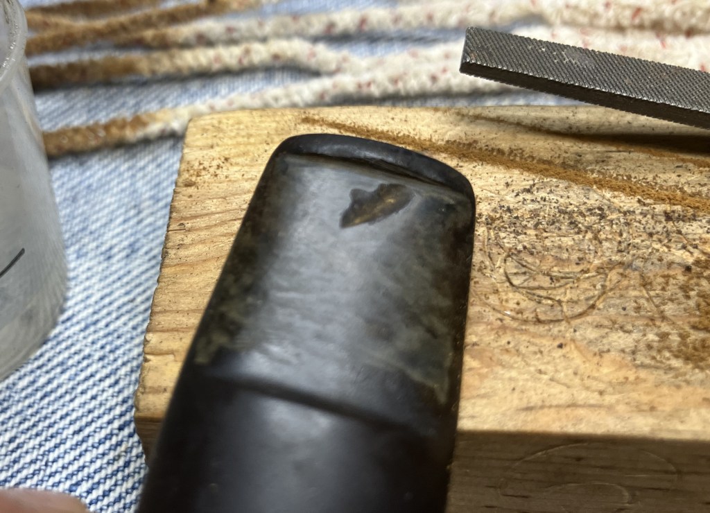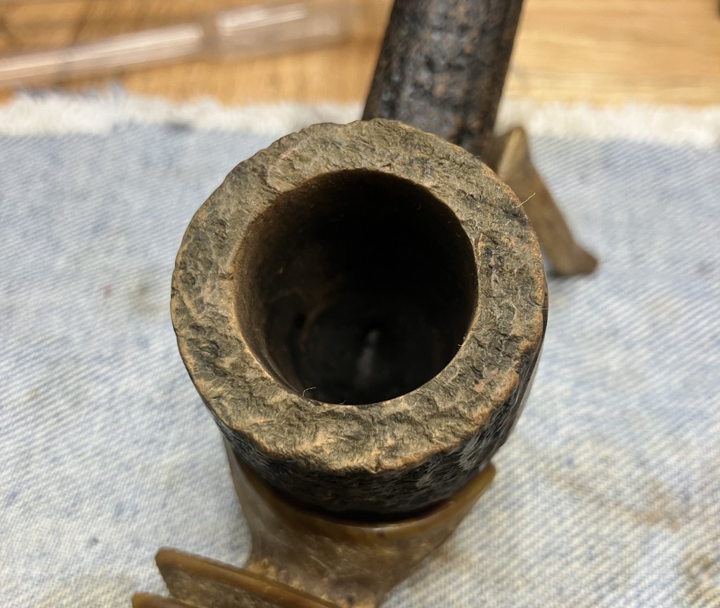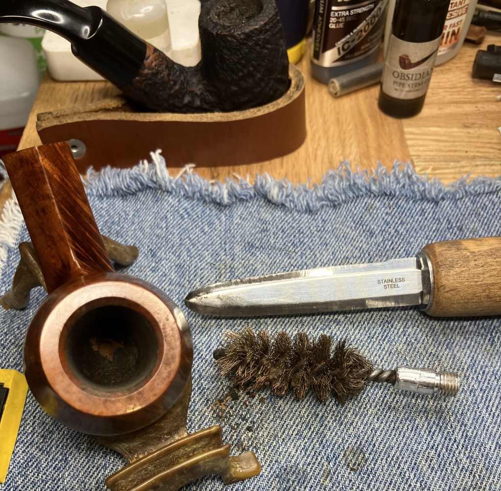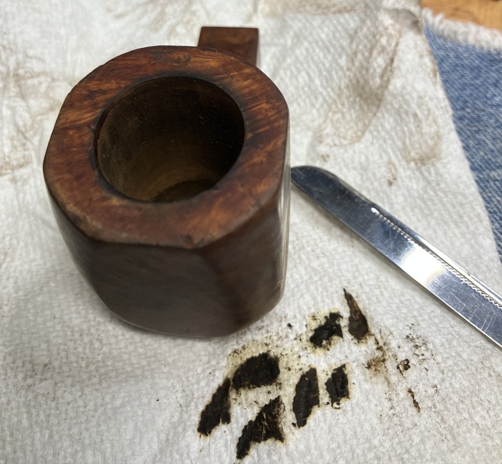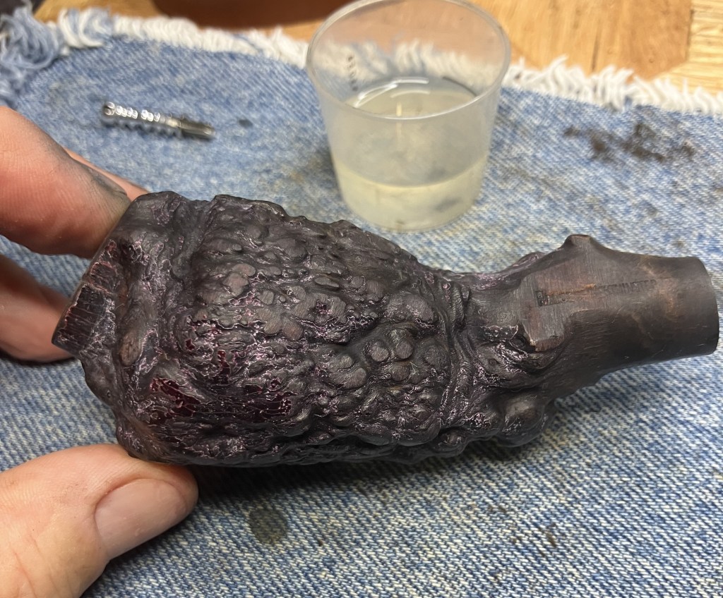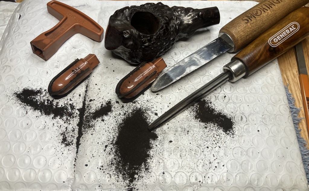 The Kaywoodie made its way to the workbench. Actually, back to the workbench after my earlier exterior picking of the older fill.