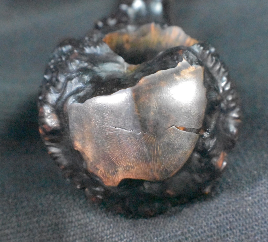 The next day the epoxy had partially cured and the fill had a slightly transparent look. The topping with the meerschaum powder did not seem to have formed the rough texture I had hoped for.