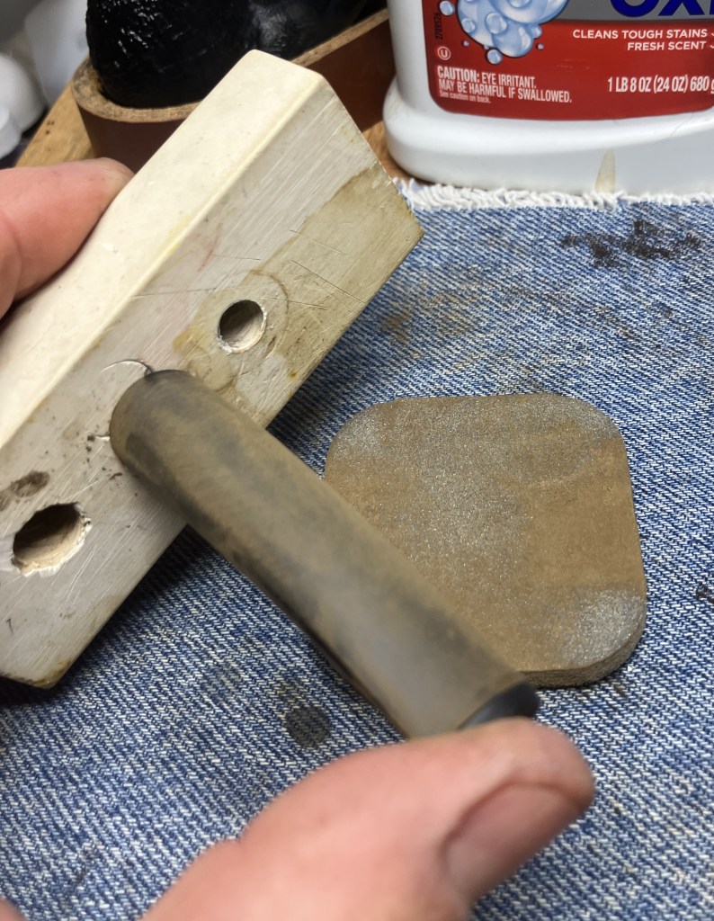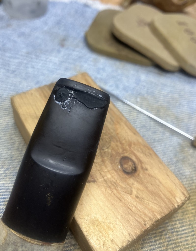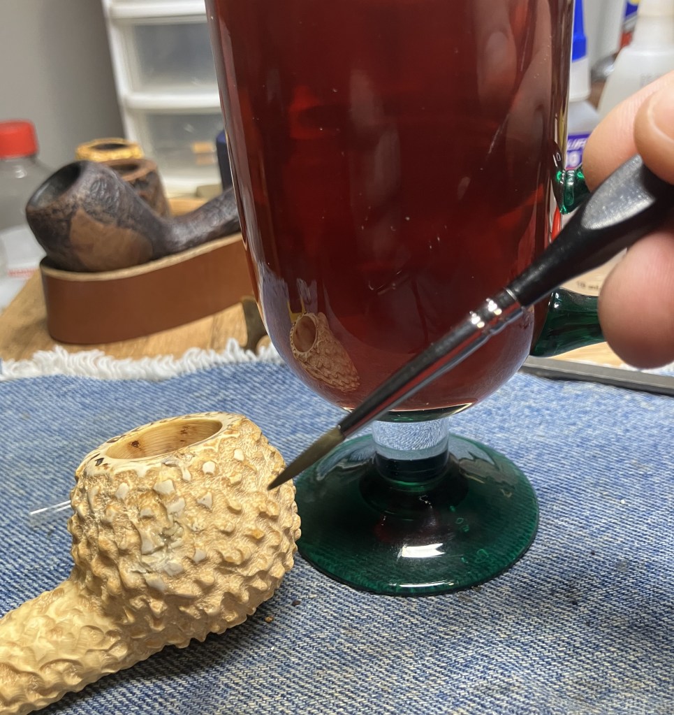 I did top the still “wet” epoxy with some meerschaum powder, in hopes of giving the meerschaum-eggwhite mixture greater surface area to adhere to.