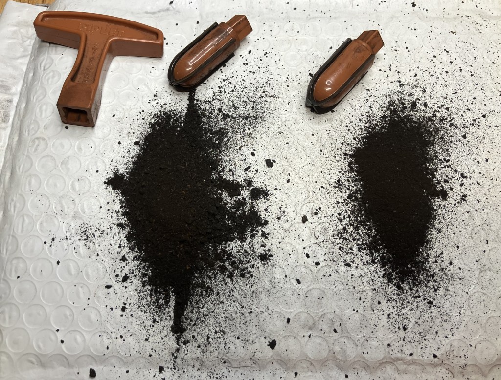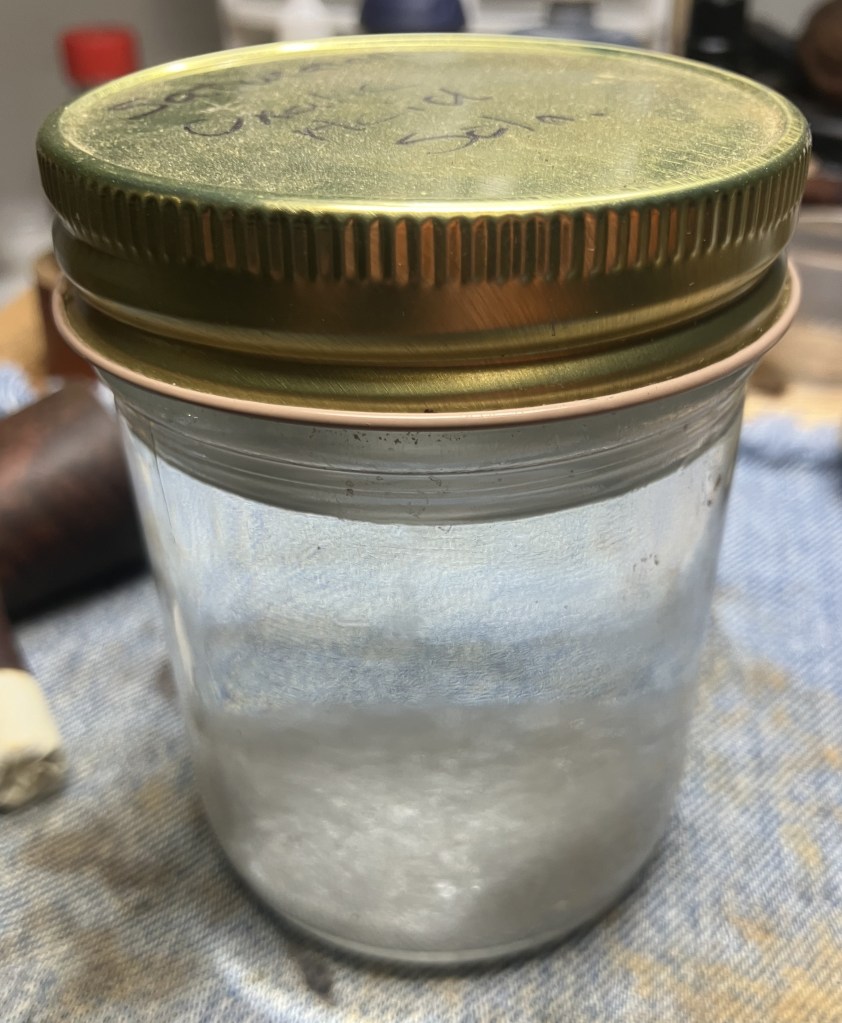 Hmm, it sounded like a reasonable plan but like all of my plans, they tend to have trouble when exposed to reality. You may be wondering, “What the heck is egg white used for?” There is a technique for repairing meerschaum pipes using powdered chalk mixed with eggwhite. I have used this technique previously in the restoration of a Kiko Caveman (Kiko Caveman Restoration – NebraskaPeteGeek). In that blog post there is the original recipe and instructions as well as an exchange between me Dal Stanton and Paresh Deshpande regarding the durability of the repair. I now have a small supply of meerschaum pieces so I planned on replacing the chalk with meerschaum powder.