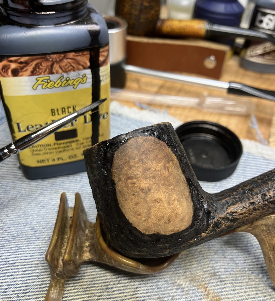 - Dye the fill on the outside of the pipe with a strongly brewed tea to match the color of the meerschaum.