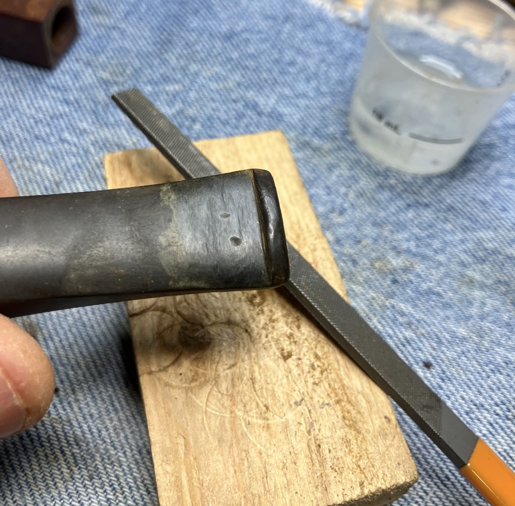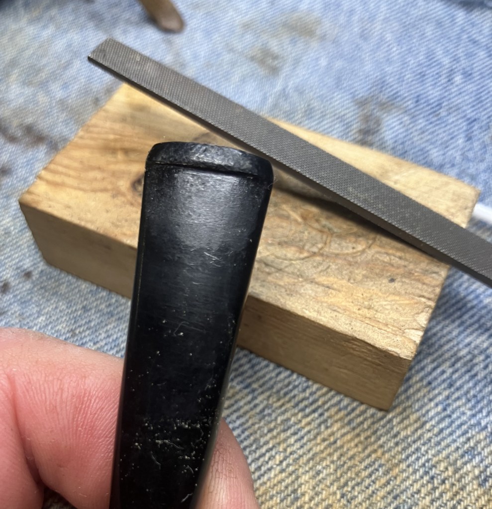 Loooong and teeedious. Eventually I was happy with the shape and fit of the inlay piece of meerschaum.
