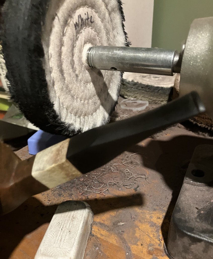 At the buffer I worked the stem with white buffing compound hoping to remove the surface oxidation and restore the shine.