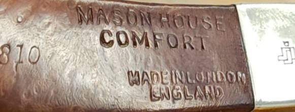 Laxey Pipes Ltd. marketed own brands like “Manxpipe”, “Manxman”, “Manxland” e.c. Names like “John Bull”, “White Knight” (unwaxed), “Domino” (black, or lined) indicated some shapes / colours of Laxey’s own series. The stems either showed the astronomical sign for “male” or “man” (circle + arrow), or the crest of the Isle of Man, the 3-legged X in a circle. Manxpipes and Laxey’s other brands were available through pipe retailers in general, but also were sold (mainly) to tourists through their own shop in Laxey.