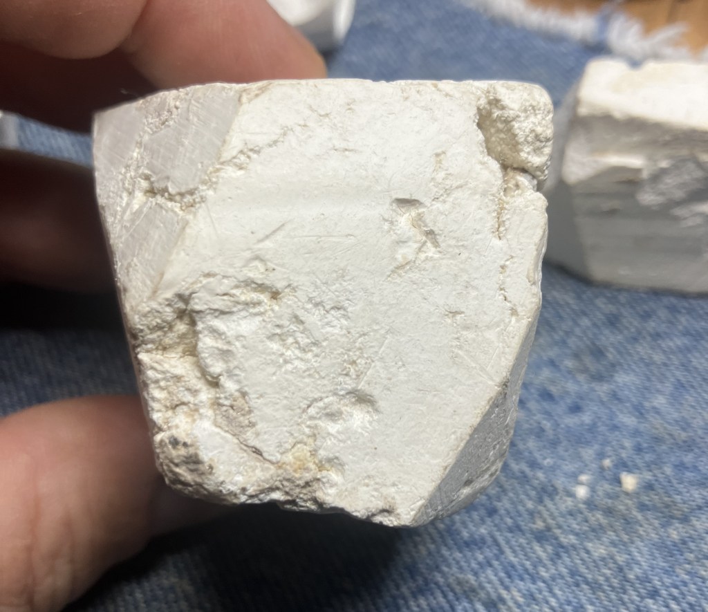Next I looked at the meerschaum pieces I had on hand. I bought an old “carve your own meerschaum pipe” kit over a year ago as a source of scrap meerschaum to use for projects like this. It had several pieces of the mineral.