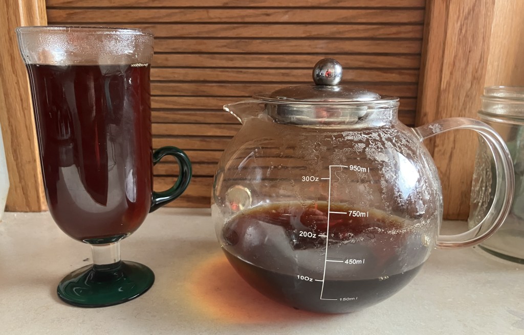 Hmm, tea time for me and the too white meerschaum scar. I brewed a nice strong Irish breakfast tea for me and to stain the meerschaum.