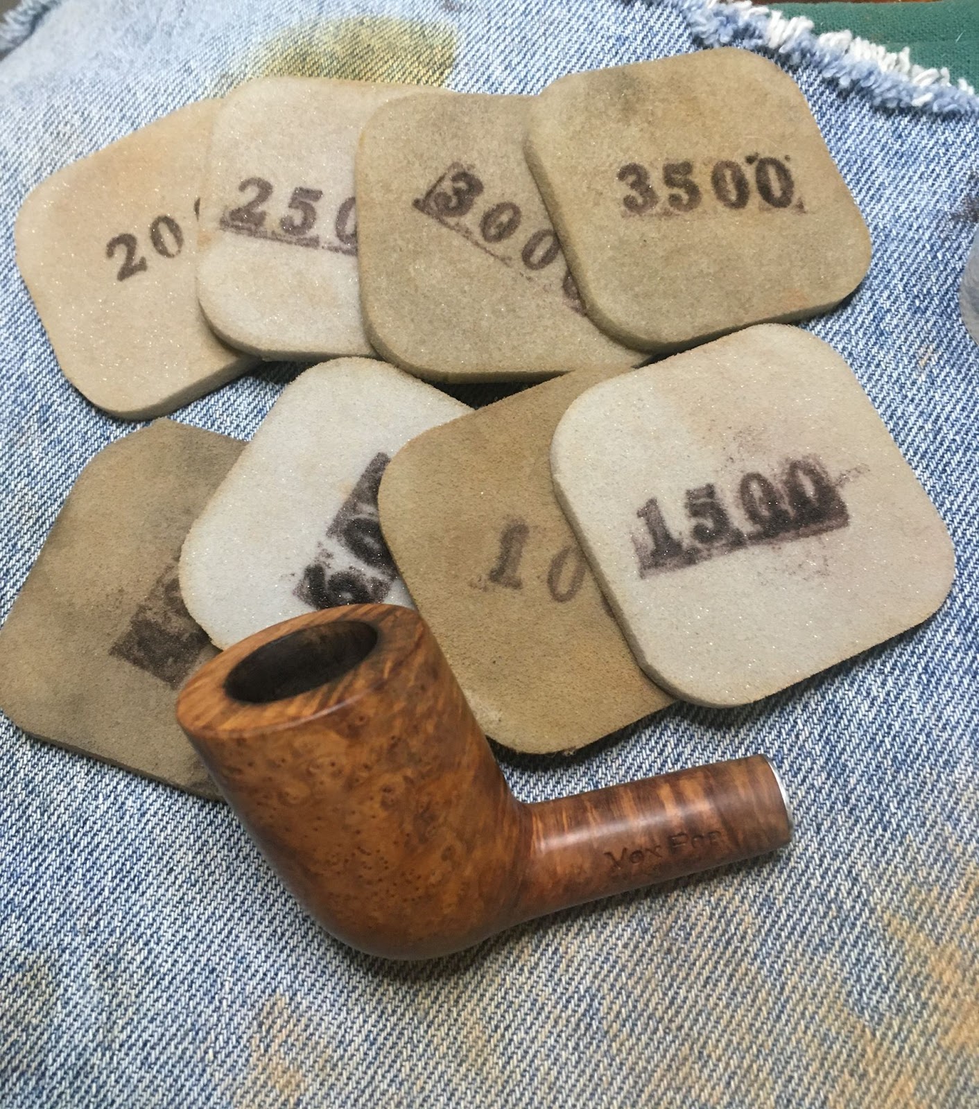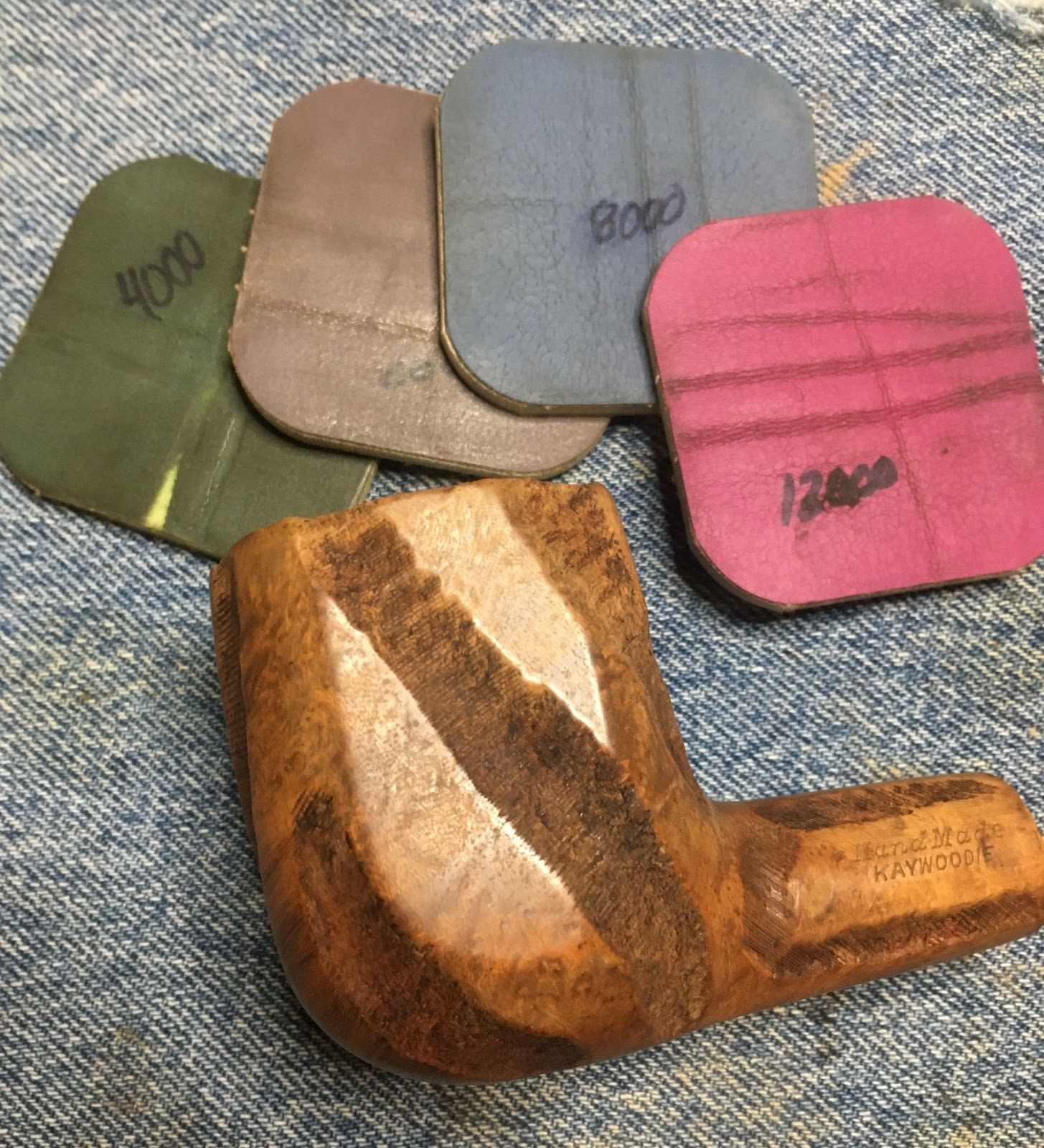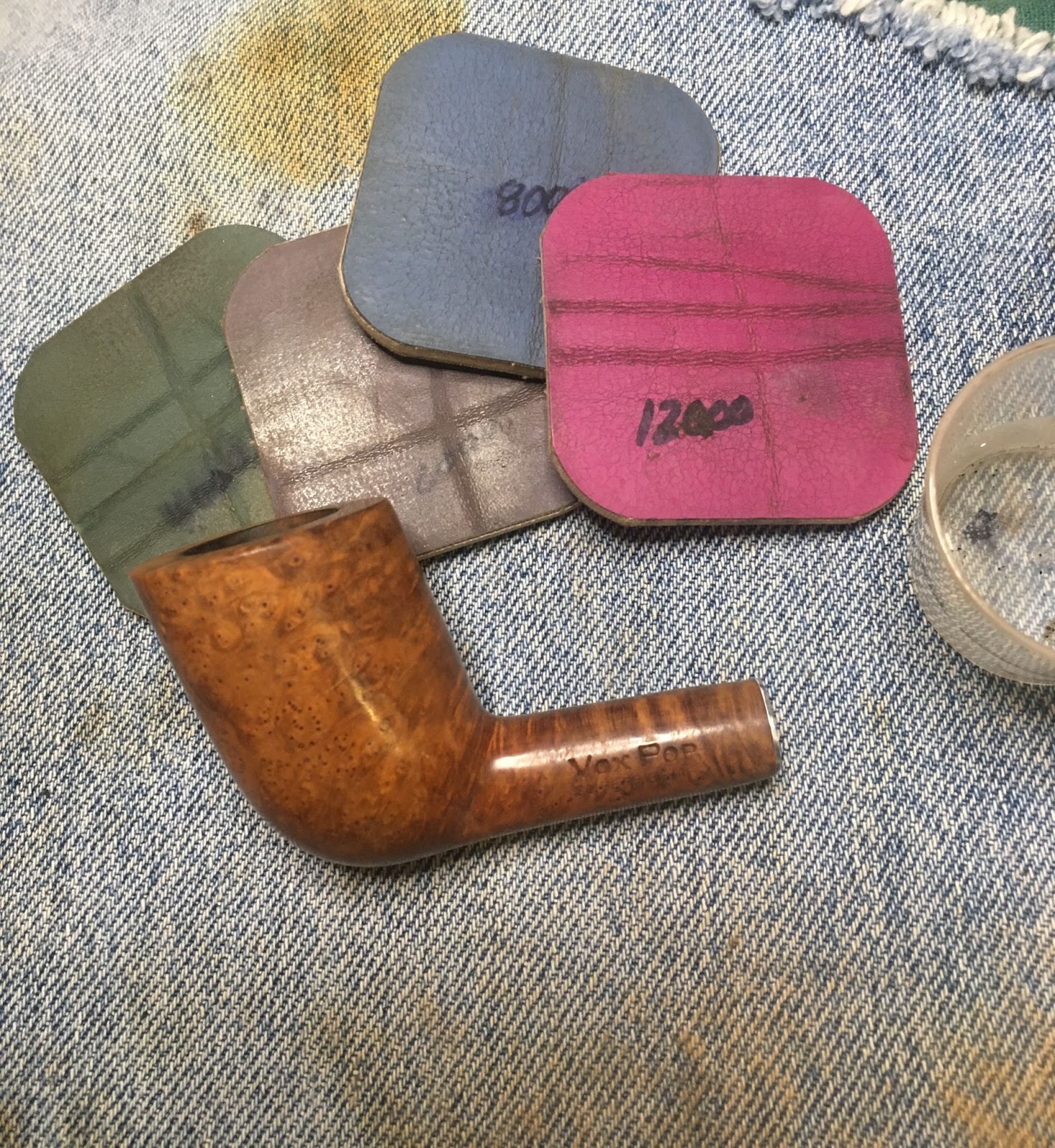 Once finished with the sanding sponges, I used the micro-mesh pads 4000-12000 in sequence again, wiping the stummel with an alcohol dipped make-up pad between micro-mesh pads.