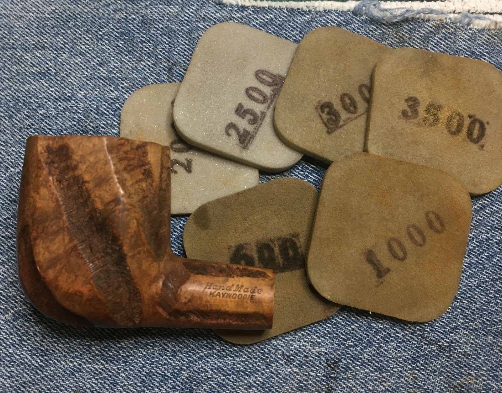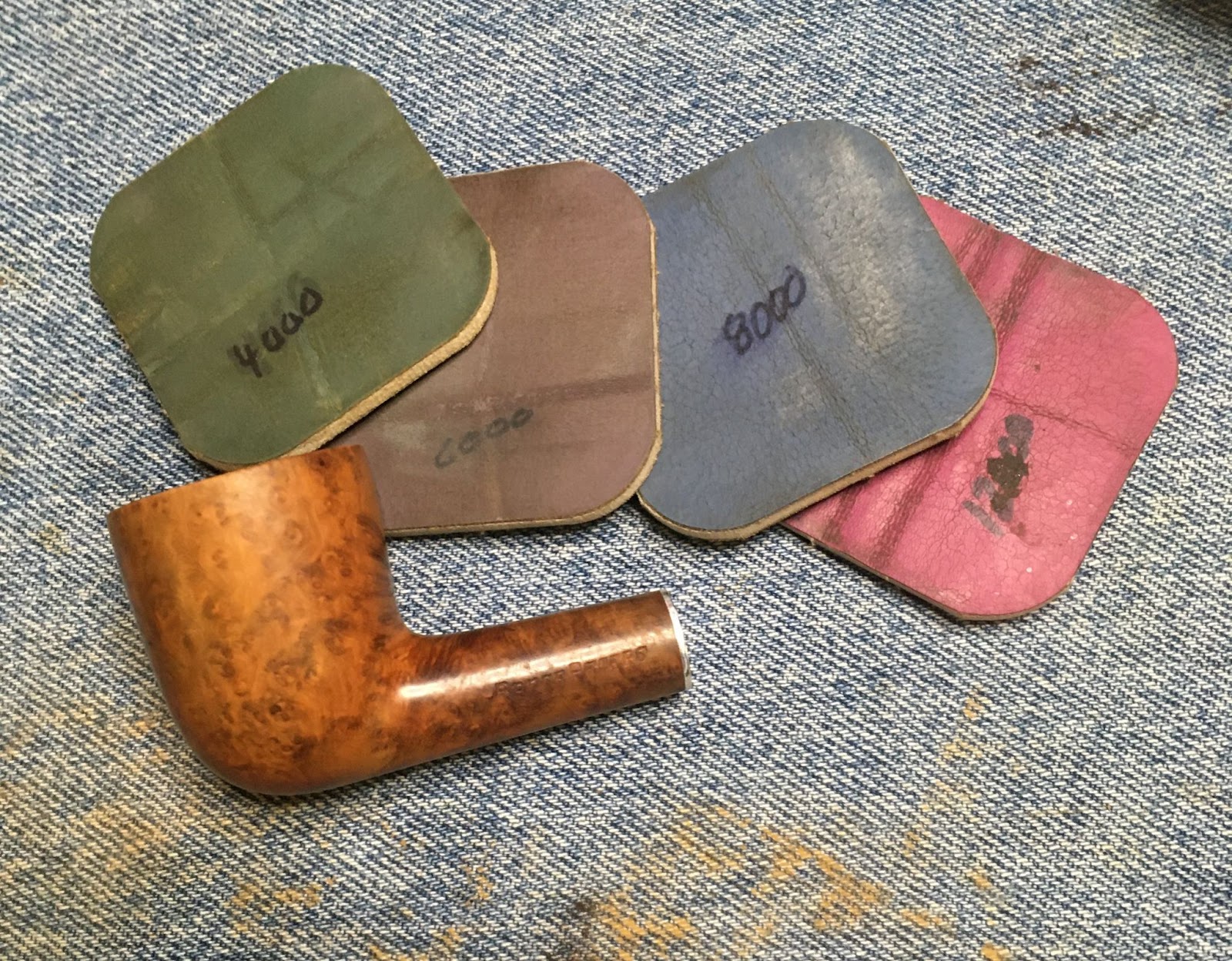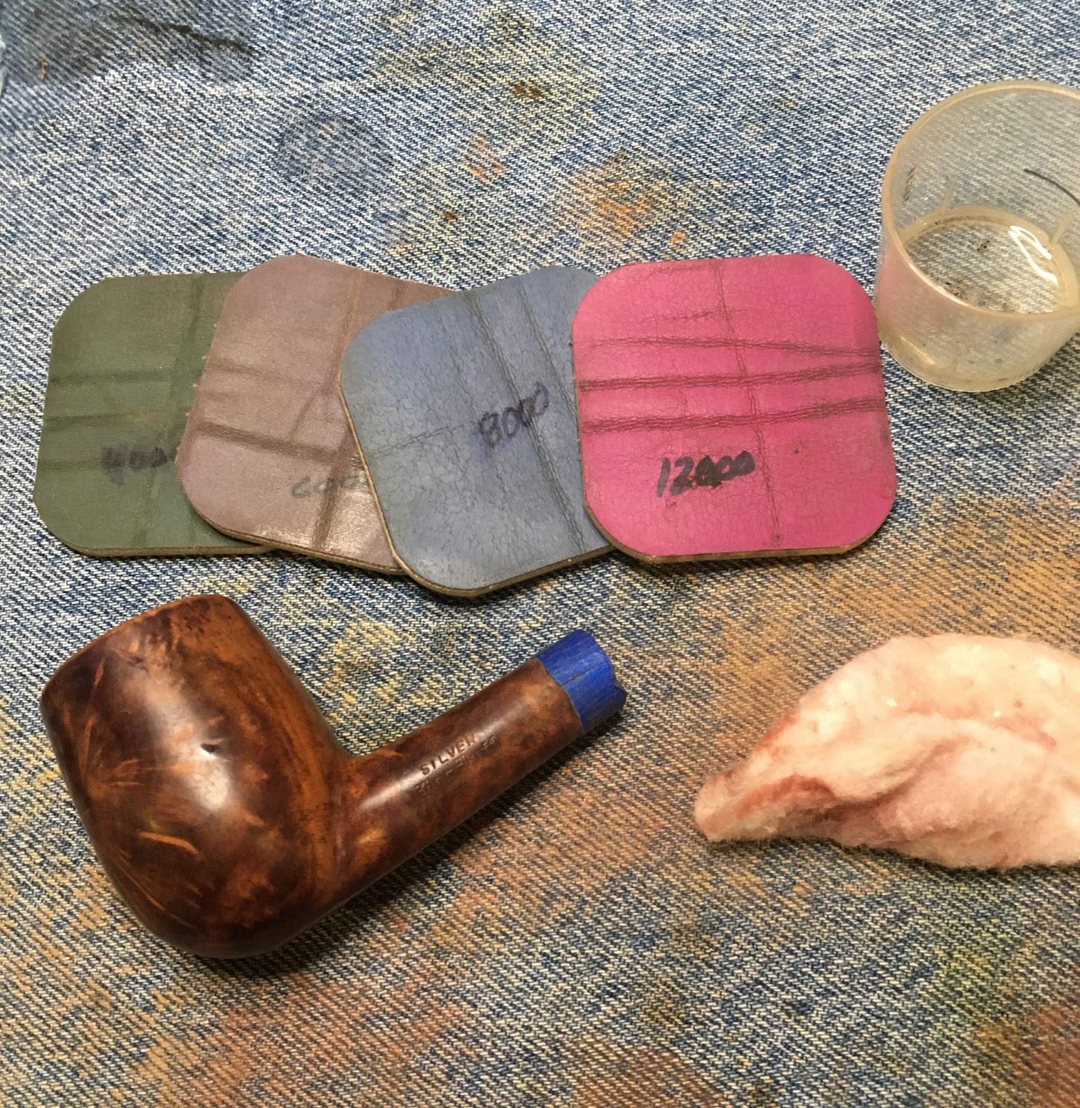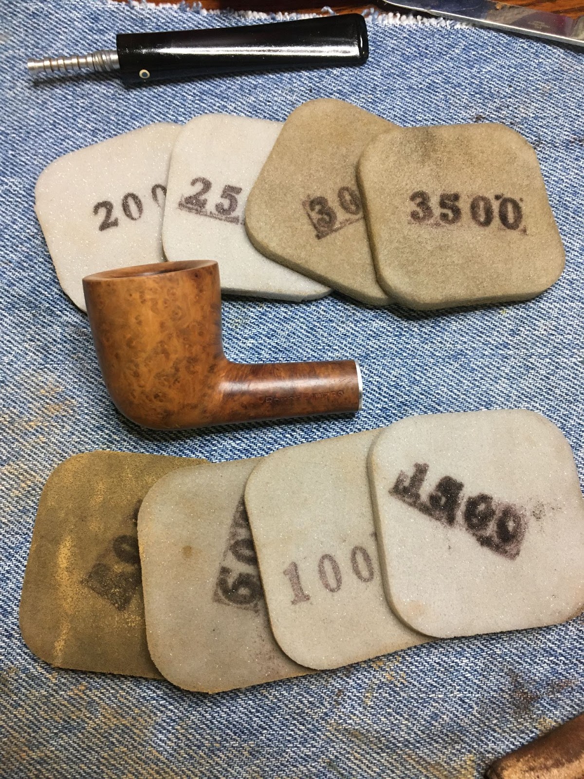Once finished with the sanding sponges, I used the micro-mesh pads 4000-12000 in sequence again, wiping the stummel with an alcohol dipped make-up pad between micro-mesh pads.
