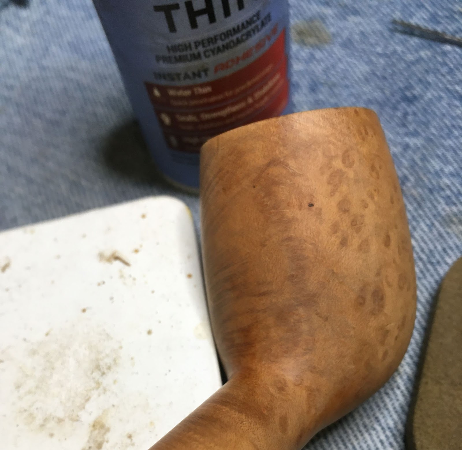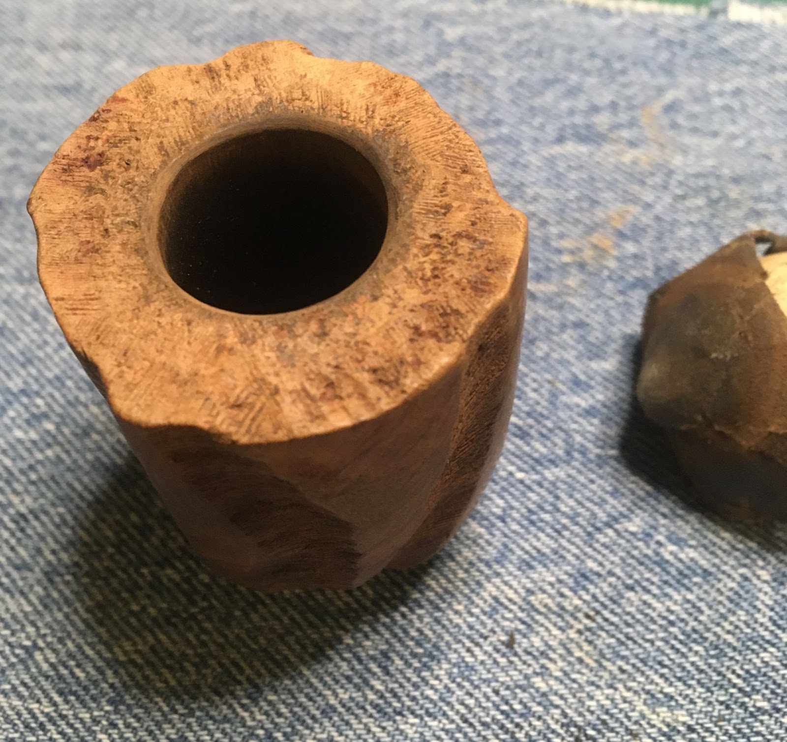 This was followed by the 220 sandpaper wrapped around the wood dowel and finally the 320 sandpaper. The photo below is after the 220 and shows there is still some sanding work to be done on the lower and bottom of the tobacco chamber.
