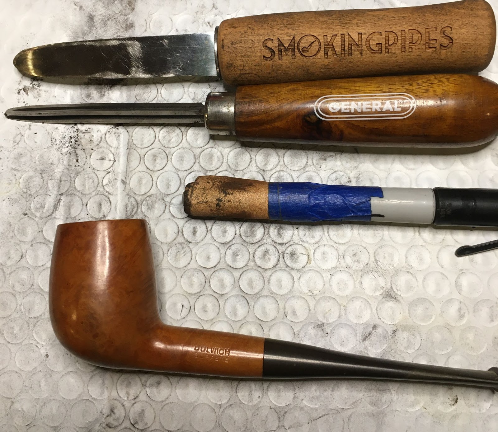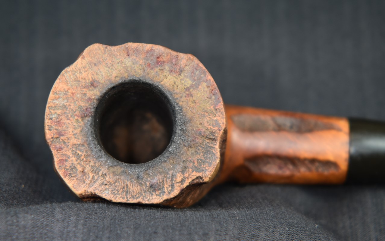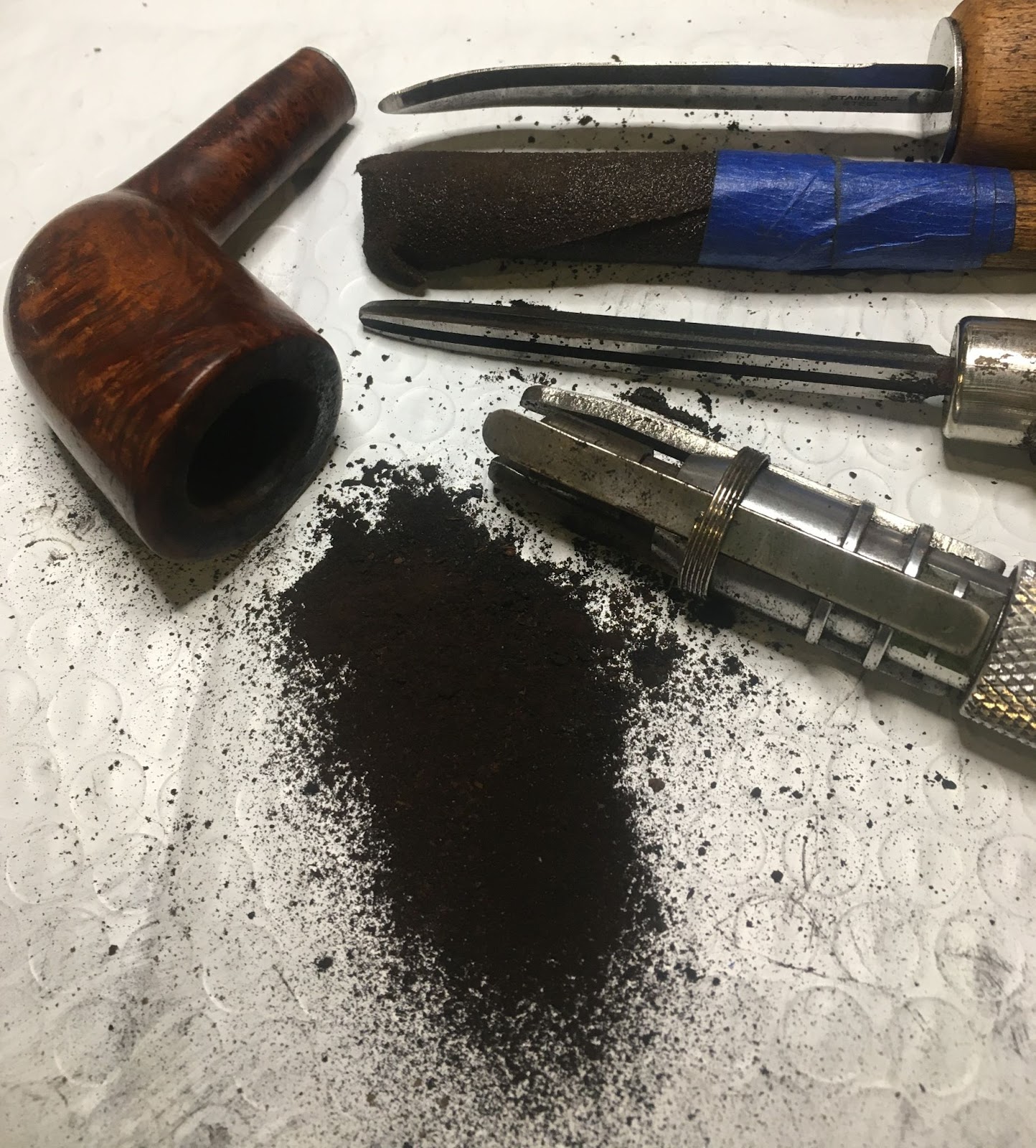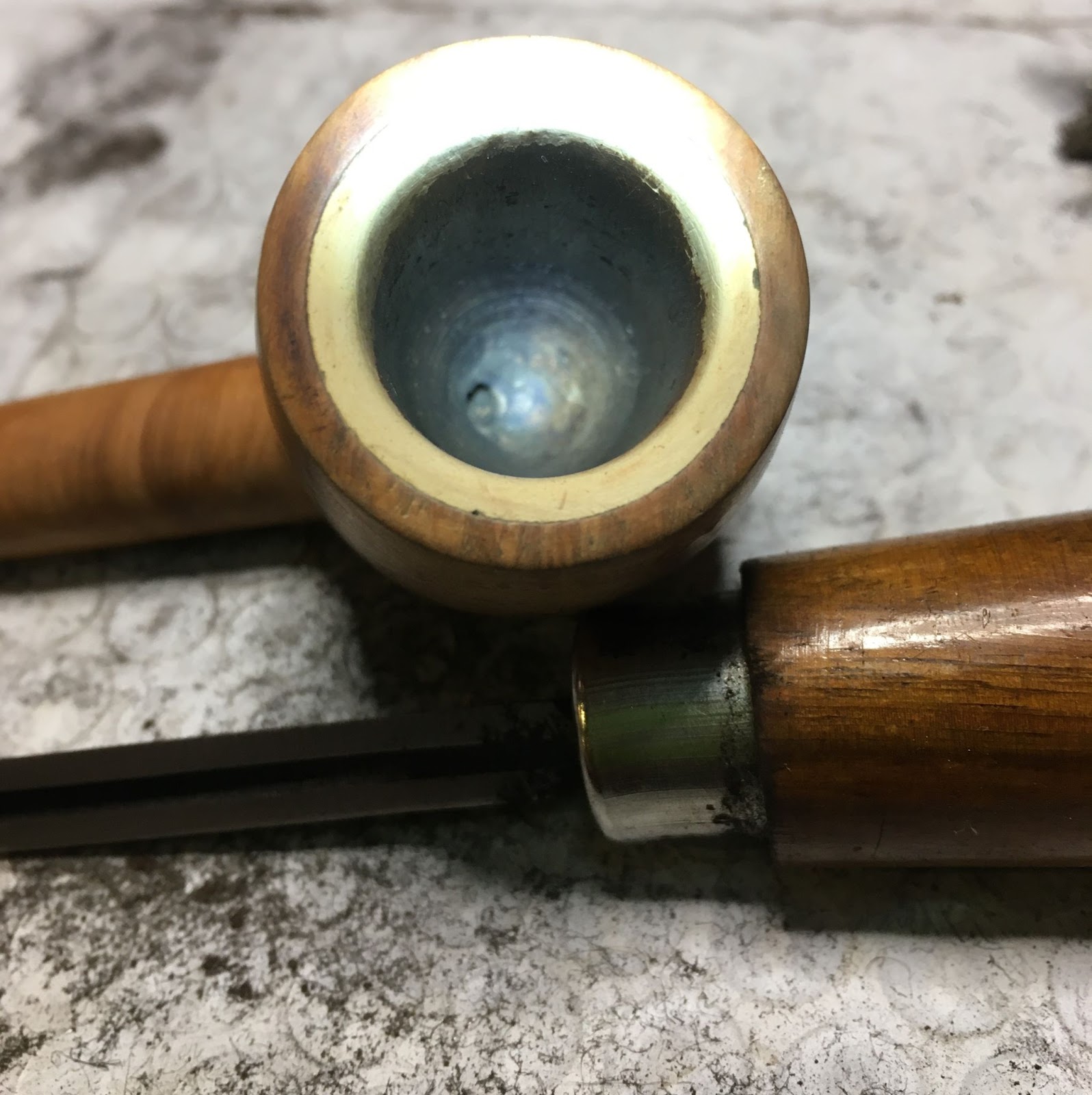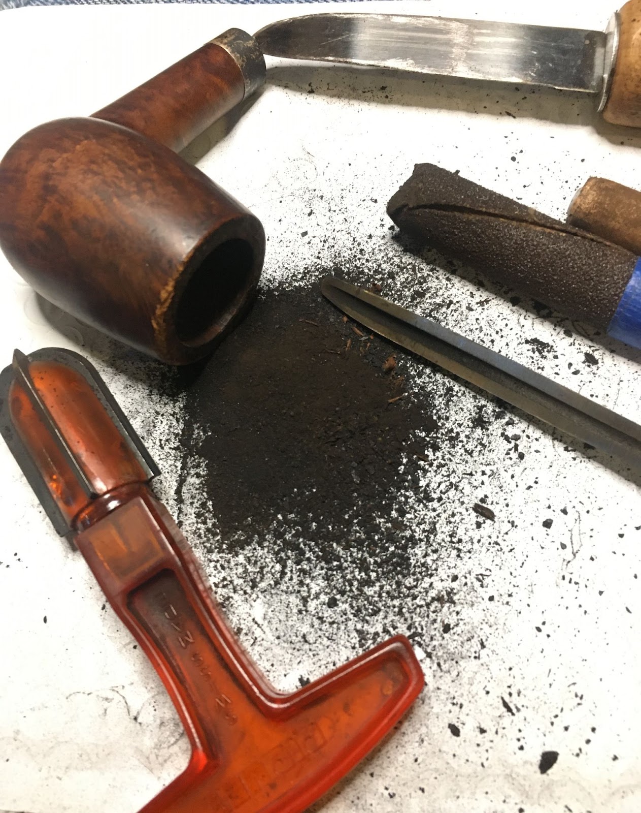 With the tobacco chamber reamed, I turned to the rim. I moistened the lava with saliva and scraped it with a sharp pocket knife. This is a slow process that requires care and patience.