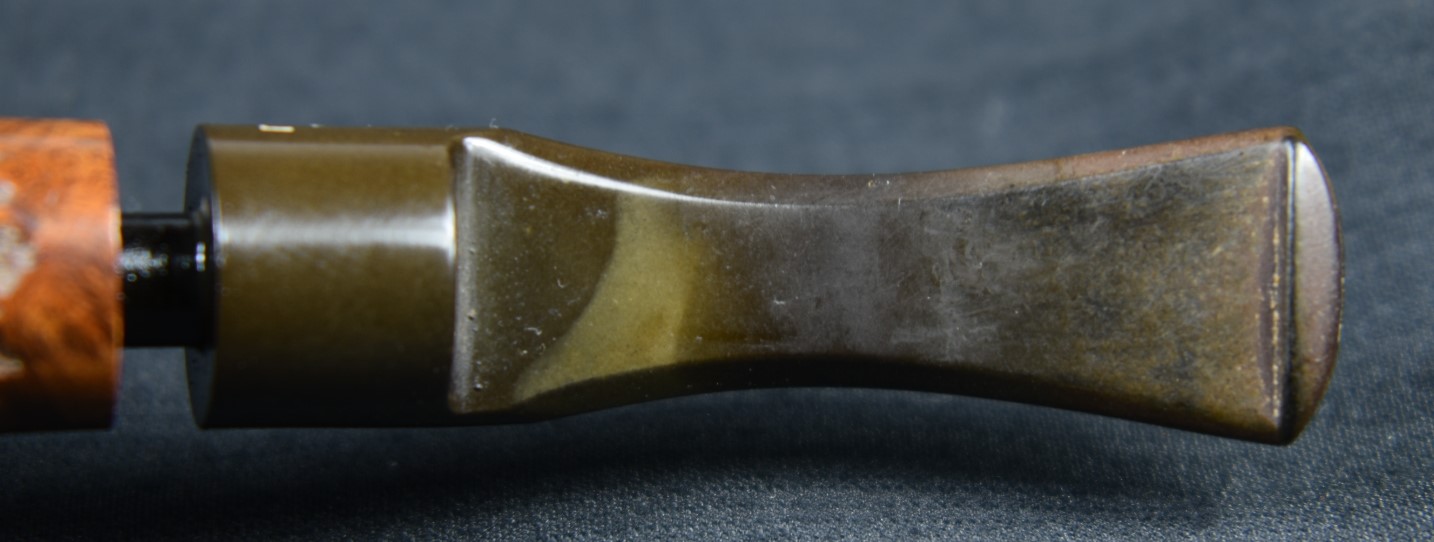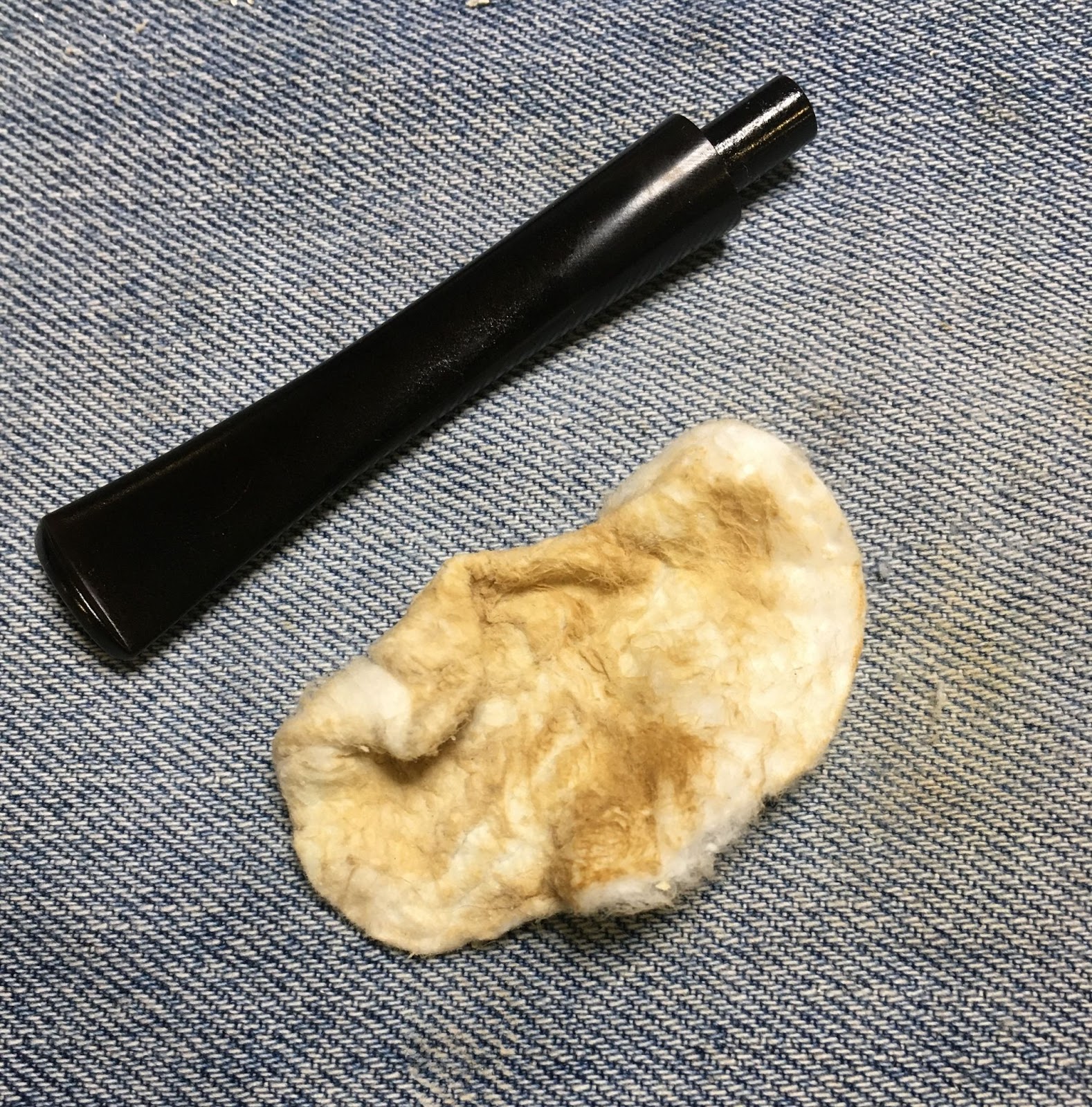 The next morning I returned to the workbench and started to finish the Executive. I wiped the oil from the stem and scrubbed it with Soft Scrub on make-up pads. The pads came back with oxidized vulcanite. Most of the color that you can see on the photo below was from the step-up of the saddle. The stem itself was pretty oxidation free. Once finished I reapplied mineral oil.