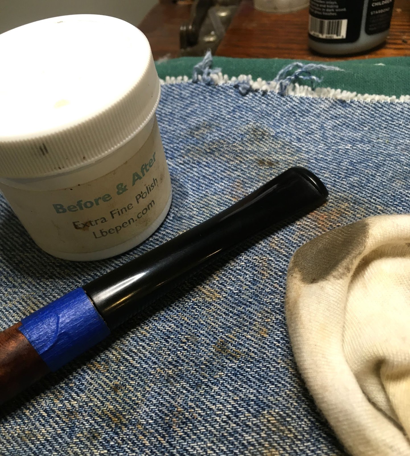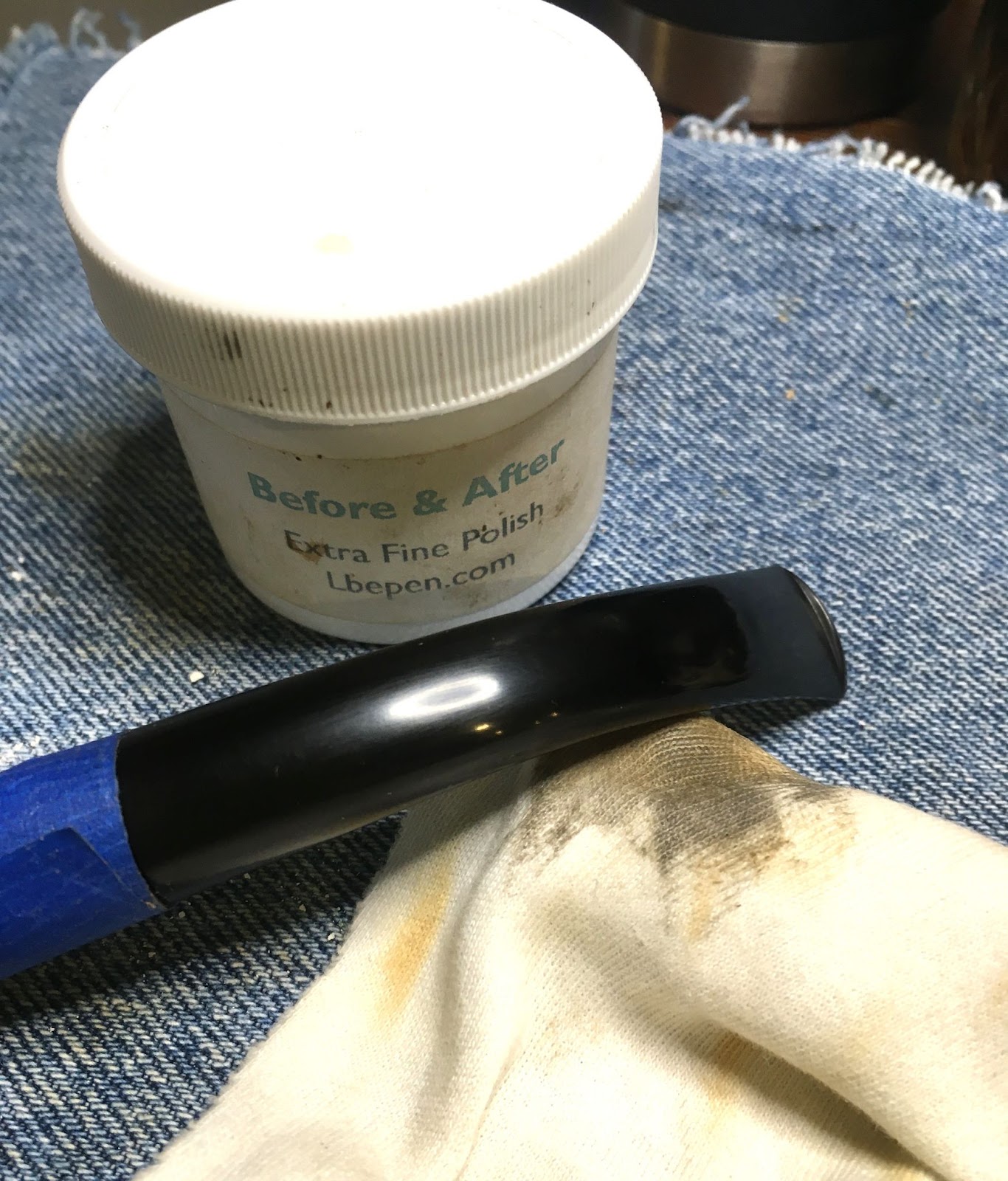 The stem was then polished with Before and After Fine Polish applied by fingertip and hand buffed with a soft cotton cloth.