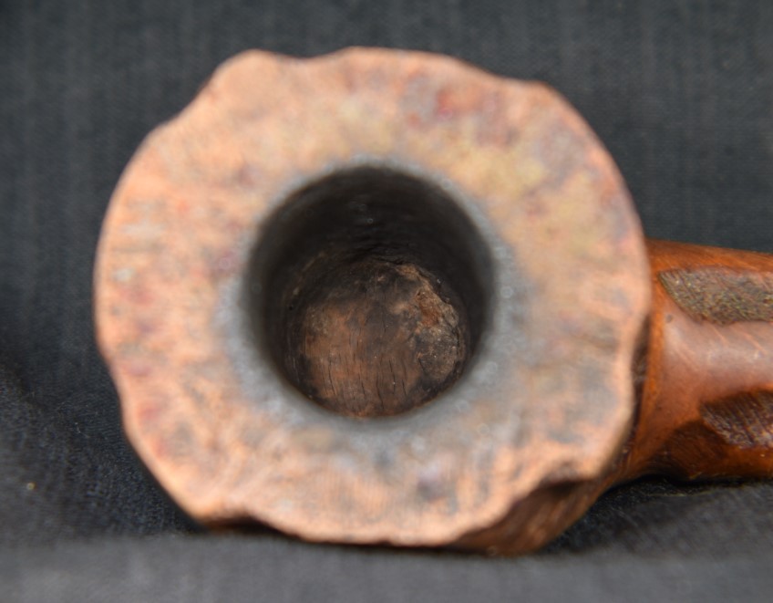 Other than the stem fitting very tightly, there were only normal issues: The rim was lava encrusted, the bowl was caked and the stem was oxidized. There were no severe bite marks or tooth chatter on the stem and the cake only seemed to be in the middle section of the bowl with little at the top or bottom. The previous owner must have come up with a unique way of smoking a pipe and only smoked the tobacco in the middle of the bowl. Okay, I thought that was funny.