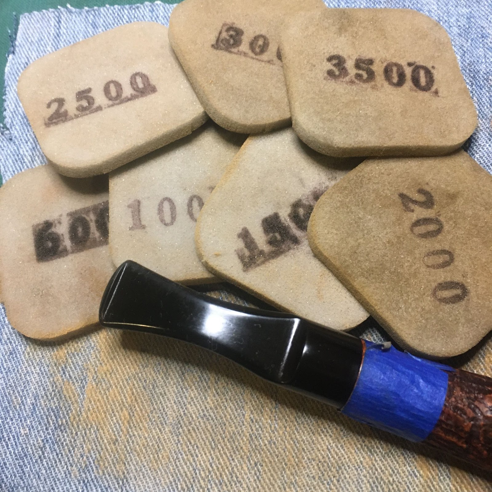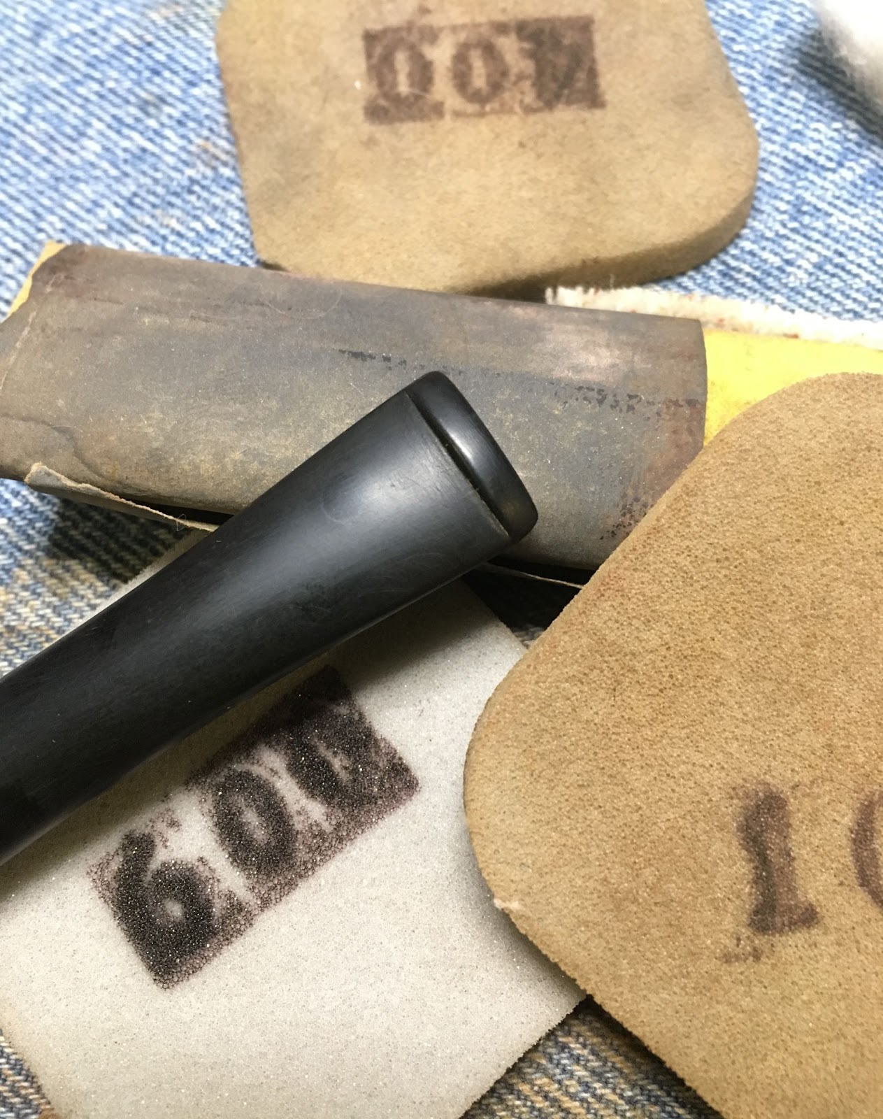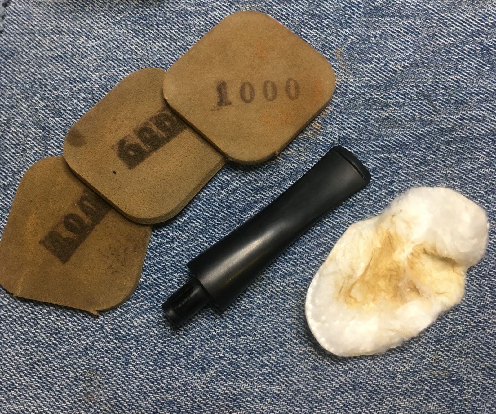I worked on the stem with the sanding sponges from 600-3500 in sequence. Between each sponges I applied mineral oil from my finger and wiped the stem with a paper towel.