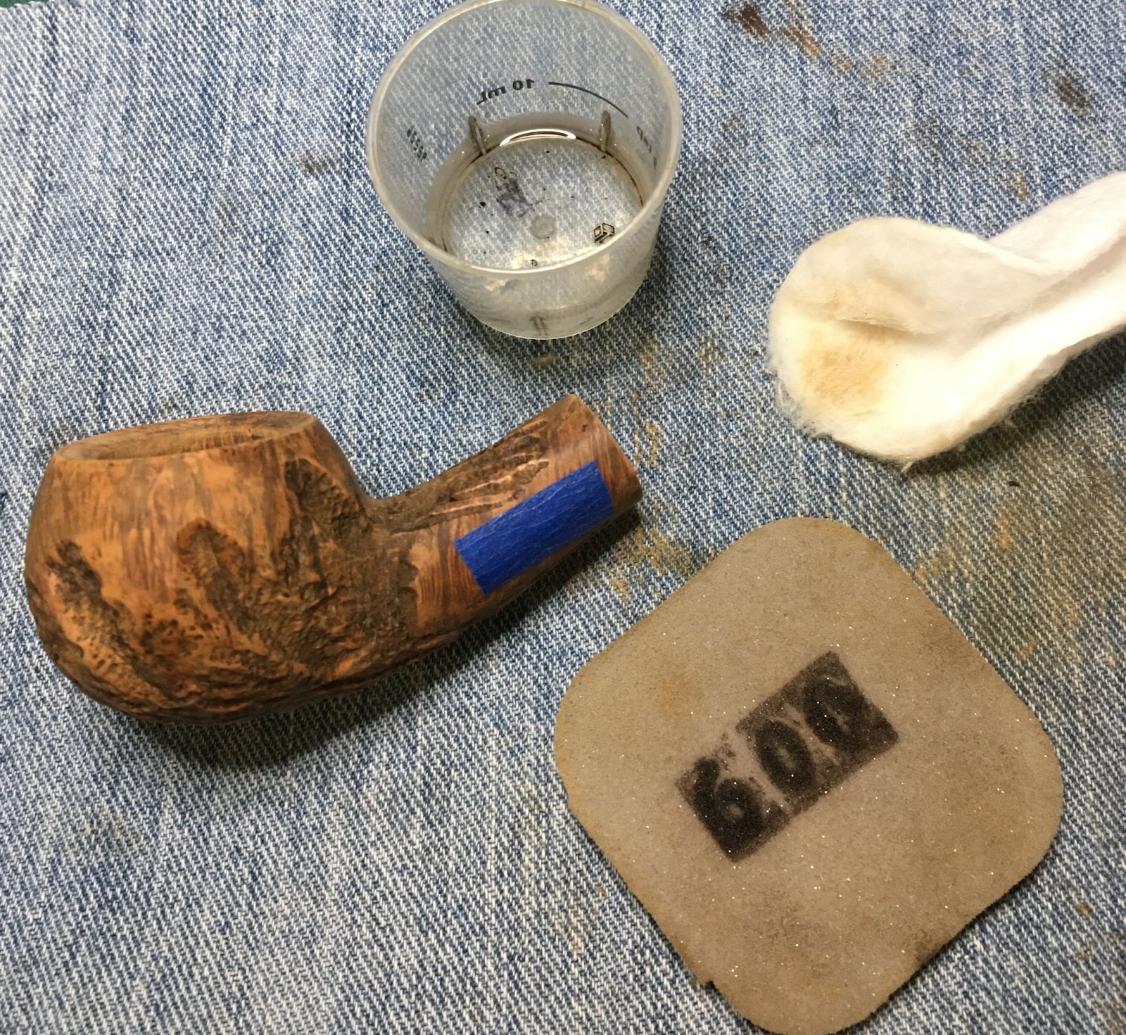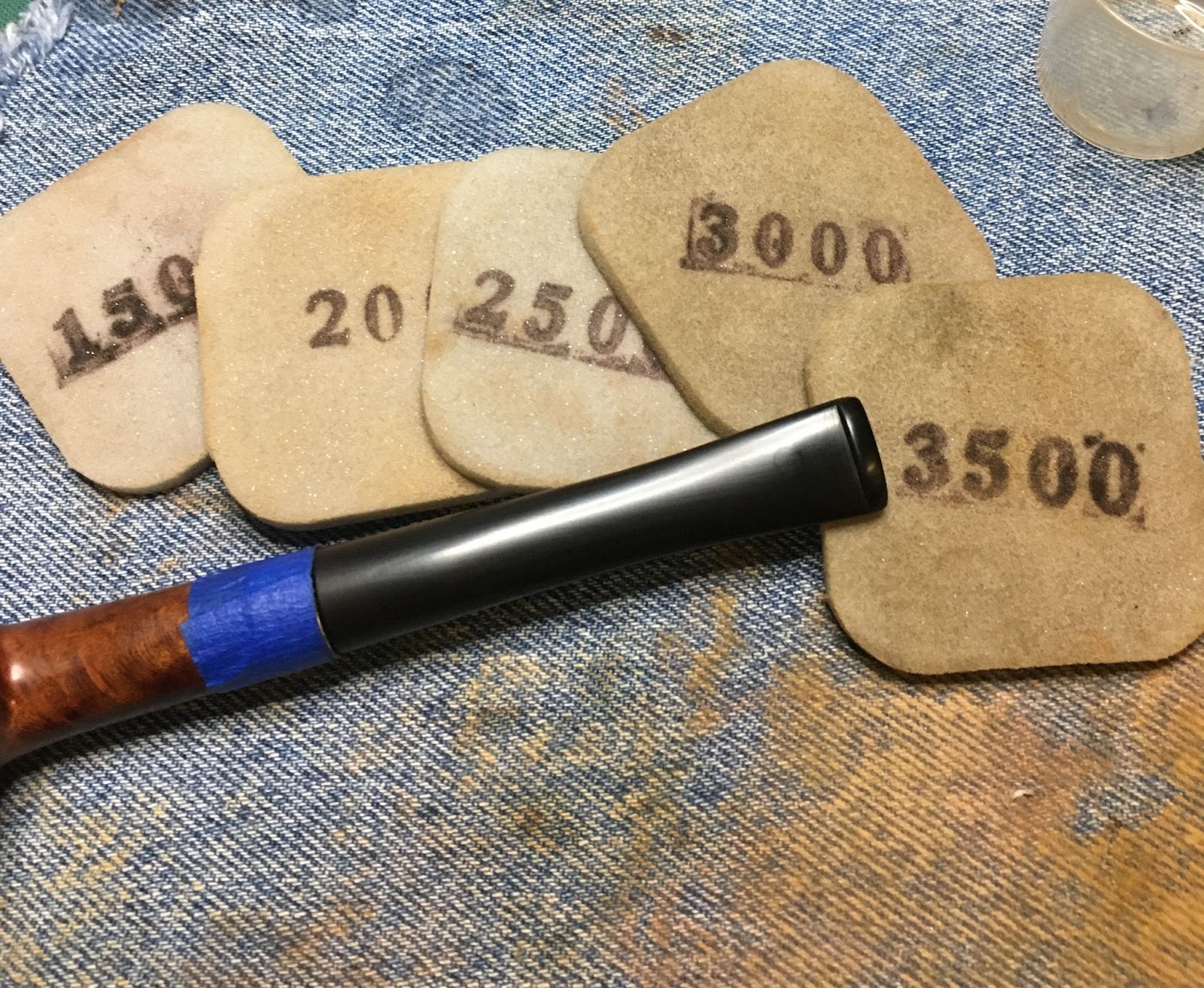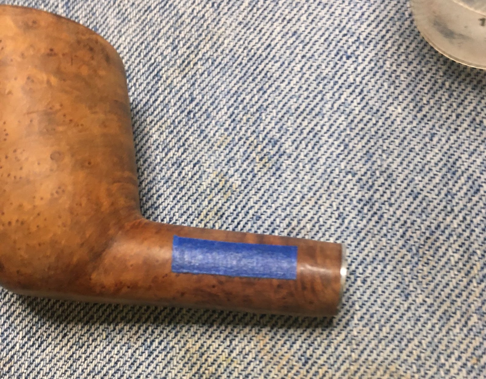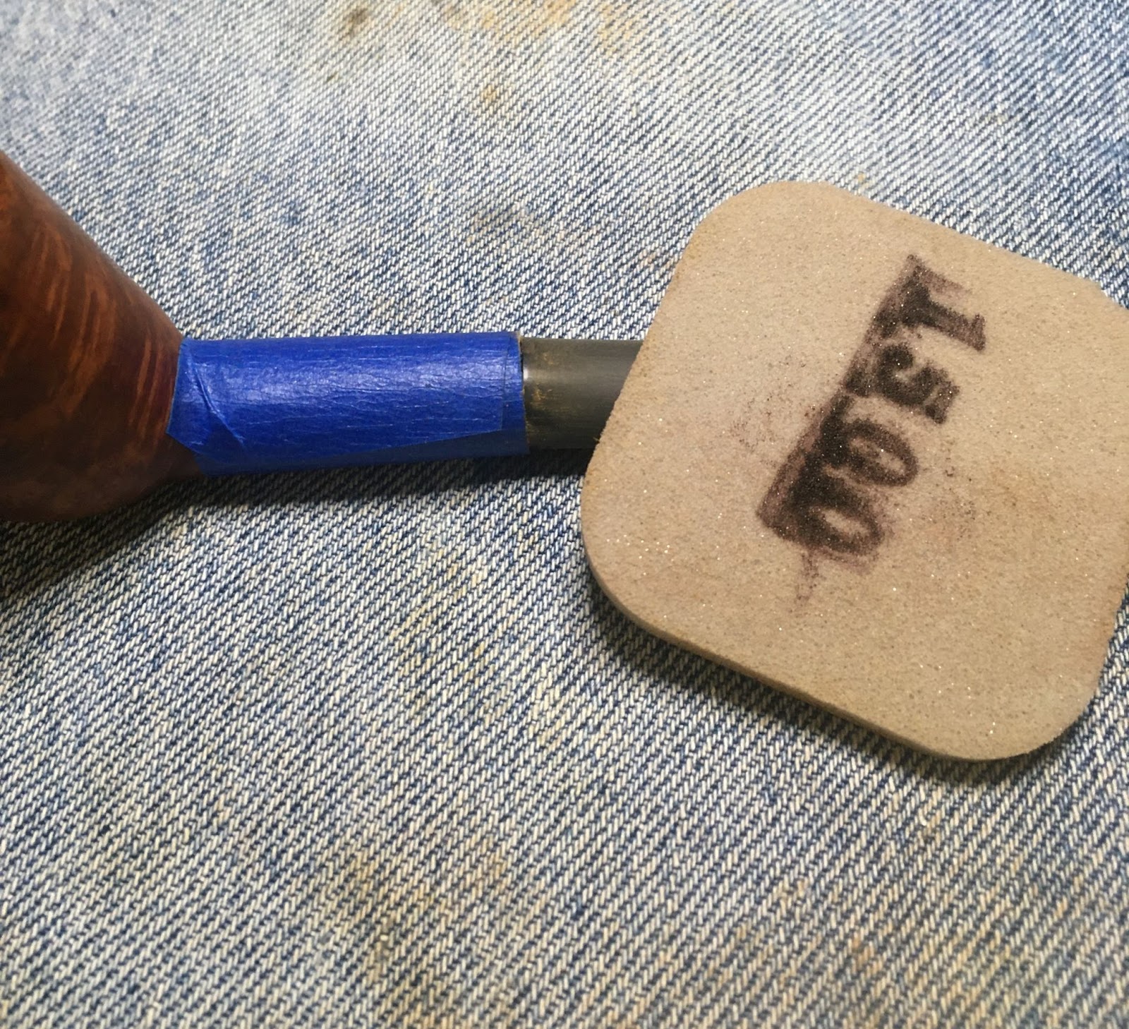 I reinserted the stem and taped the shank stamps and stem logo with painters tape in preparation of the stem sanding.
