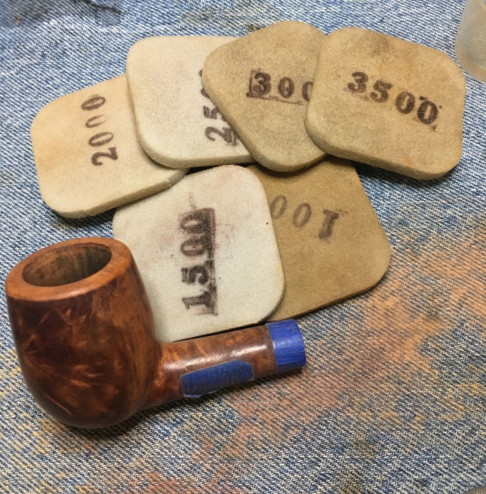 I sanded the smooth areas of the stummel with the sanding sponges in sequence from the 1000-3500 sponges. Between each sponge I wiped the stummel with a make-up pad moistened with alcohol.