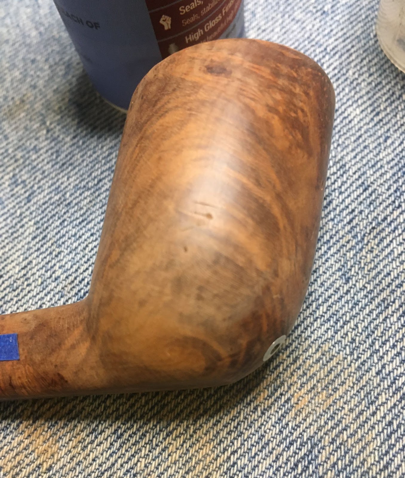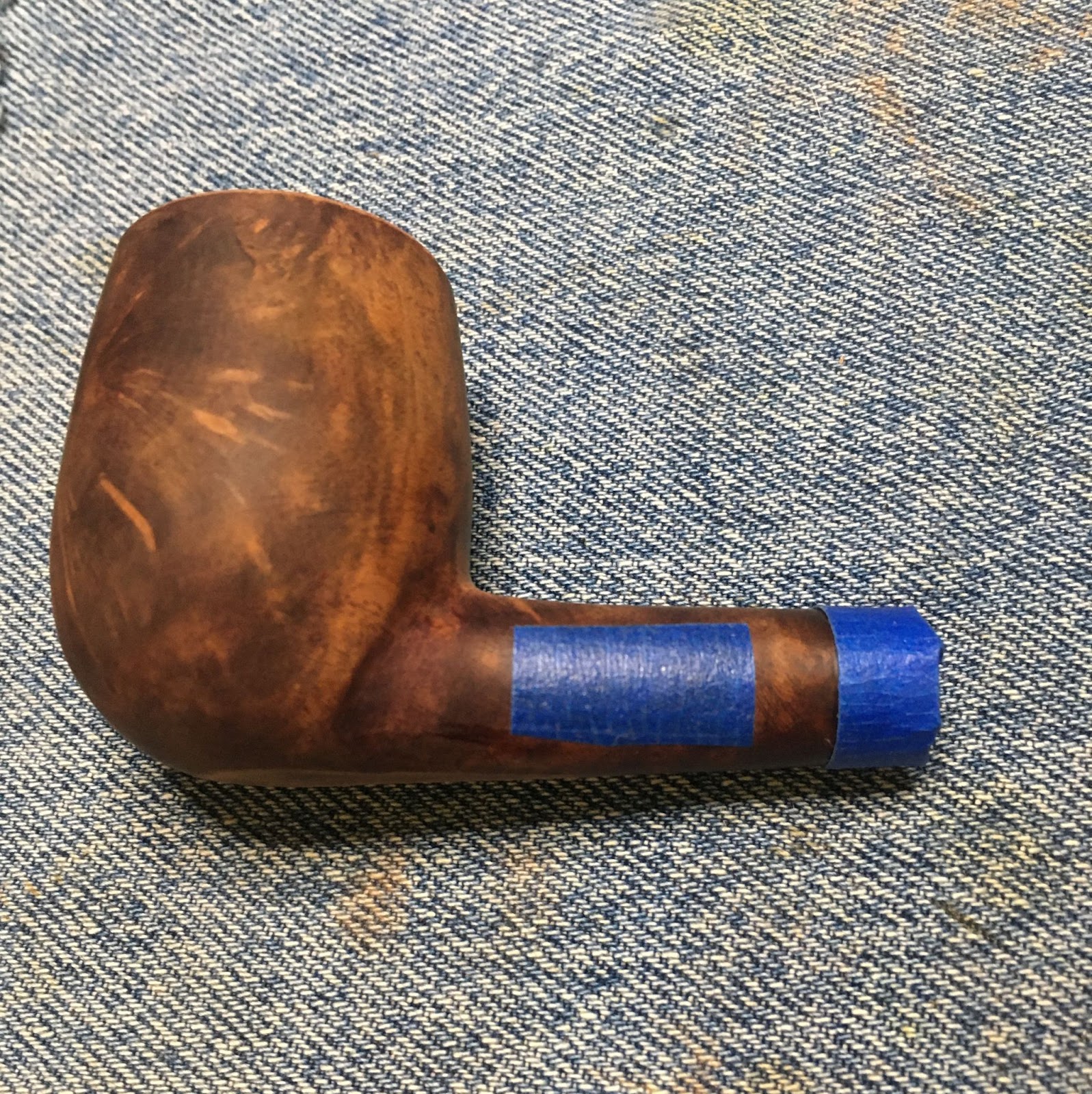 With the stummel exterior and interior cleaned, it was now ready for some sanding. I taped the stamp with painters tape for its protection and began with a light sanding with the 600 sanding sponge followed by an alcohol wipe. I was looking for pits that would need to be filled. I did find a couple but in looking at them and thinking about it, I decided to leave them alone. I thought they actually added to the rustic look of the pipe.