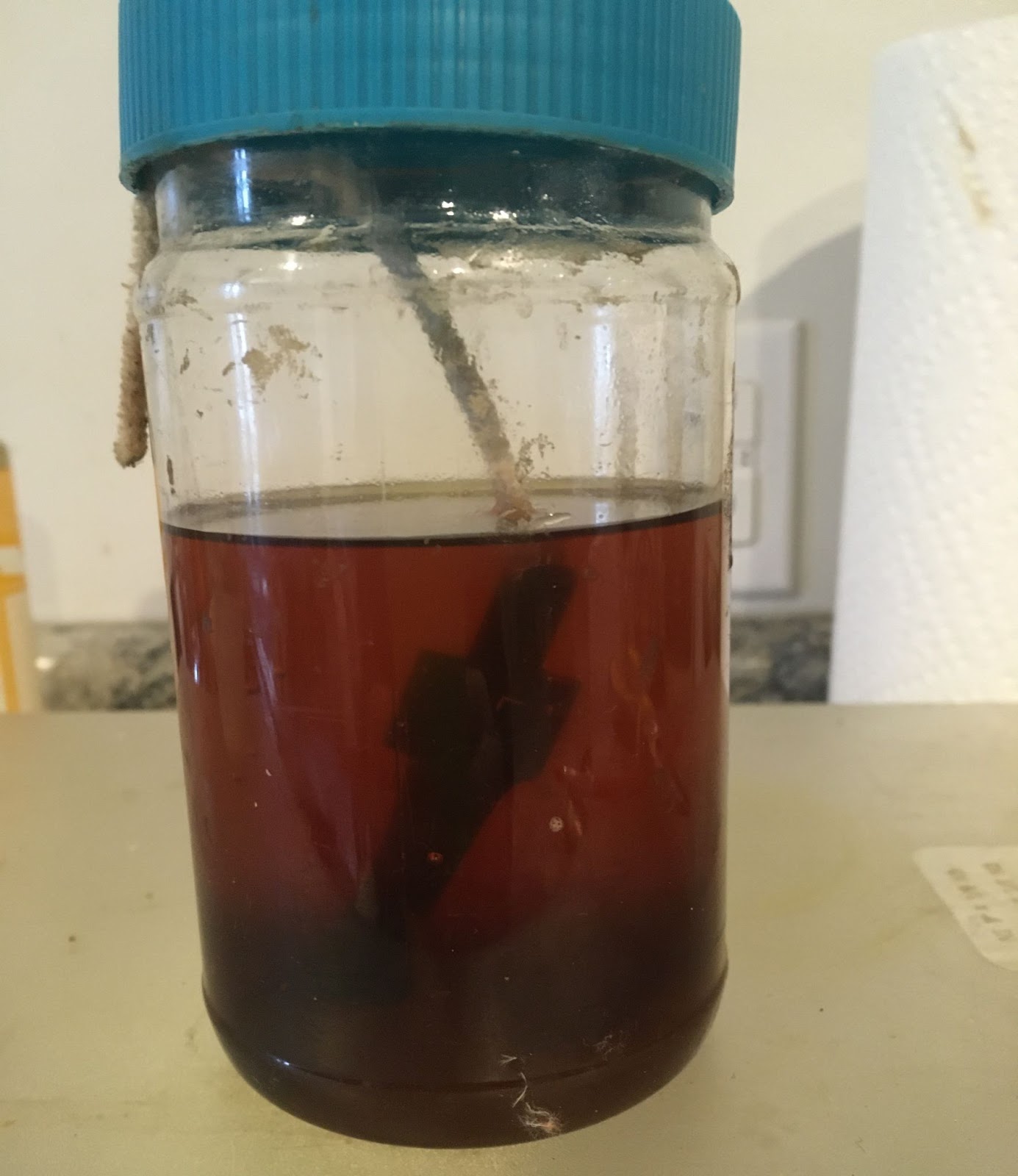 I started with a clean piece of denim on the work surface. I figured that I would need to have this stem in the Before and After Extra Strength Deoxidizer solution for a minimum of 4 hours. So, I started prepping the stem for the deox (that’s my play on detoxification – detox).