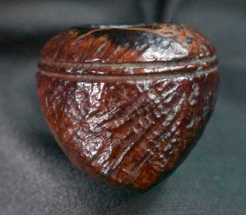 I remember studying the Ancient Greeks in 9th grade. The whole philosophy of Stoicism struck me as great. Relying on rational thought over emotion was somehow appealing, which is funny because having worked with adolescents for a 33 year career as a secondary teacher, I quickly learned that nearly all of their decisions have nothing to do with reason. Come to think of it neither do mine. This pipe for example, a Kaywoodie meerschaum apple which by the seller’s description: