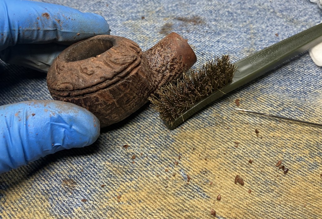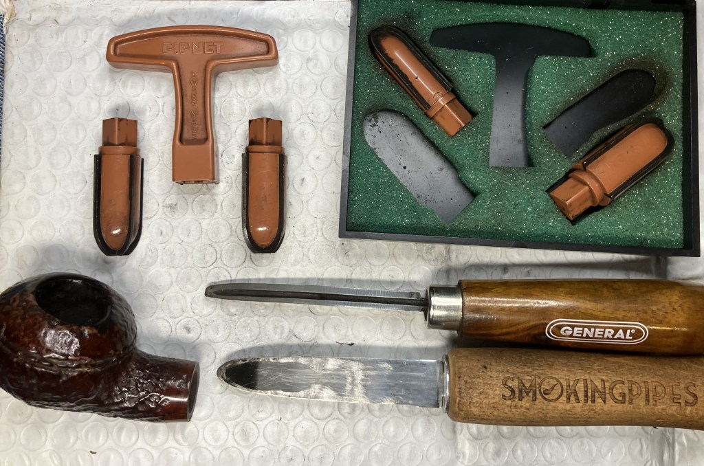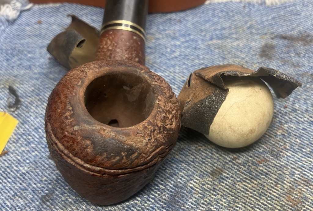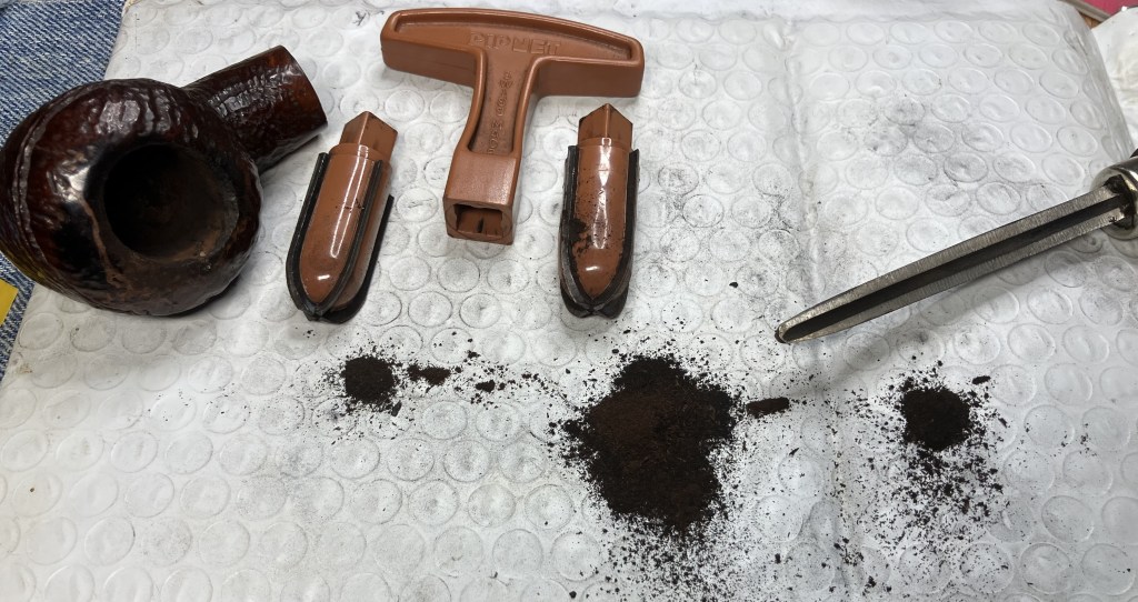 The Kaywoodie made its way to the workbench. Actually, back to the workbench after my earlier exterior picking of the older fill.