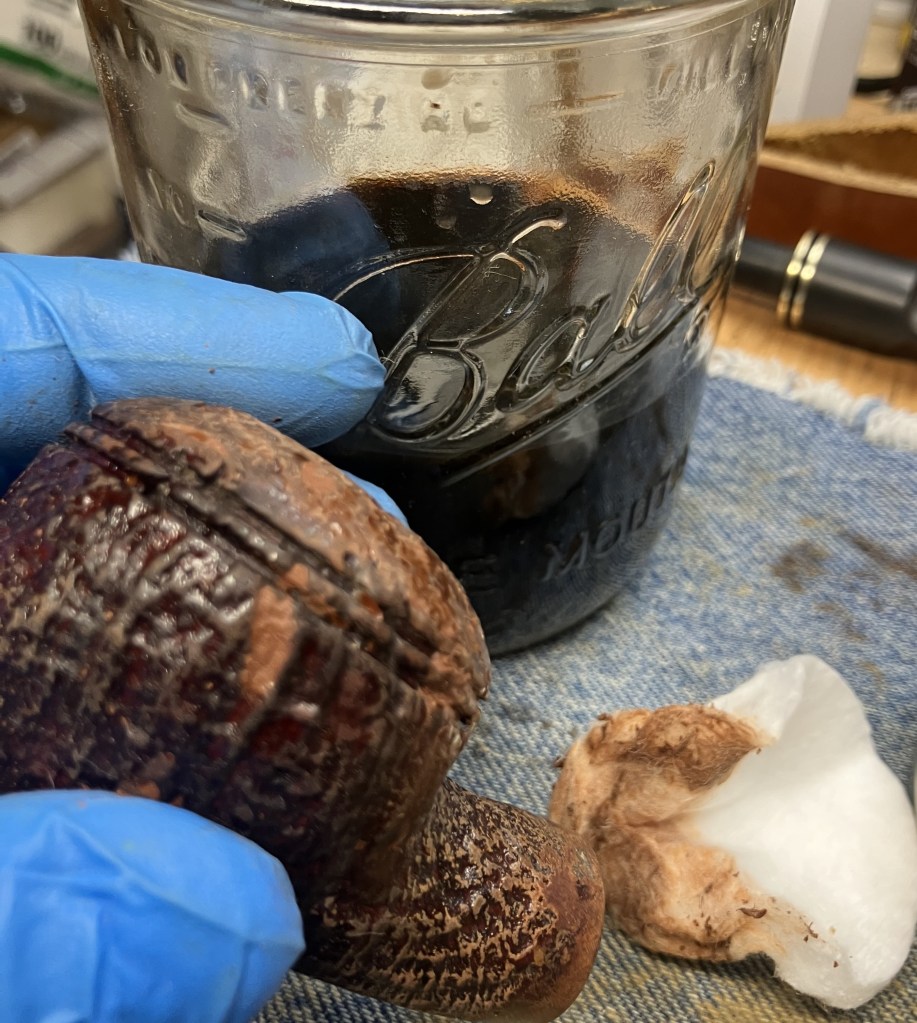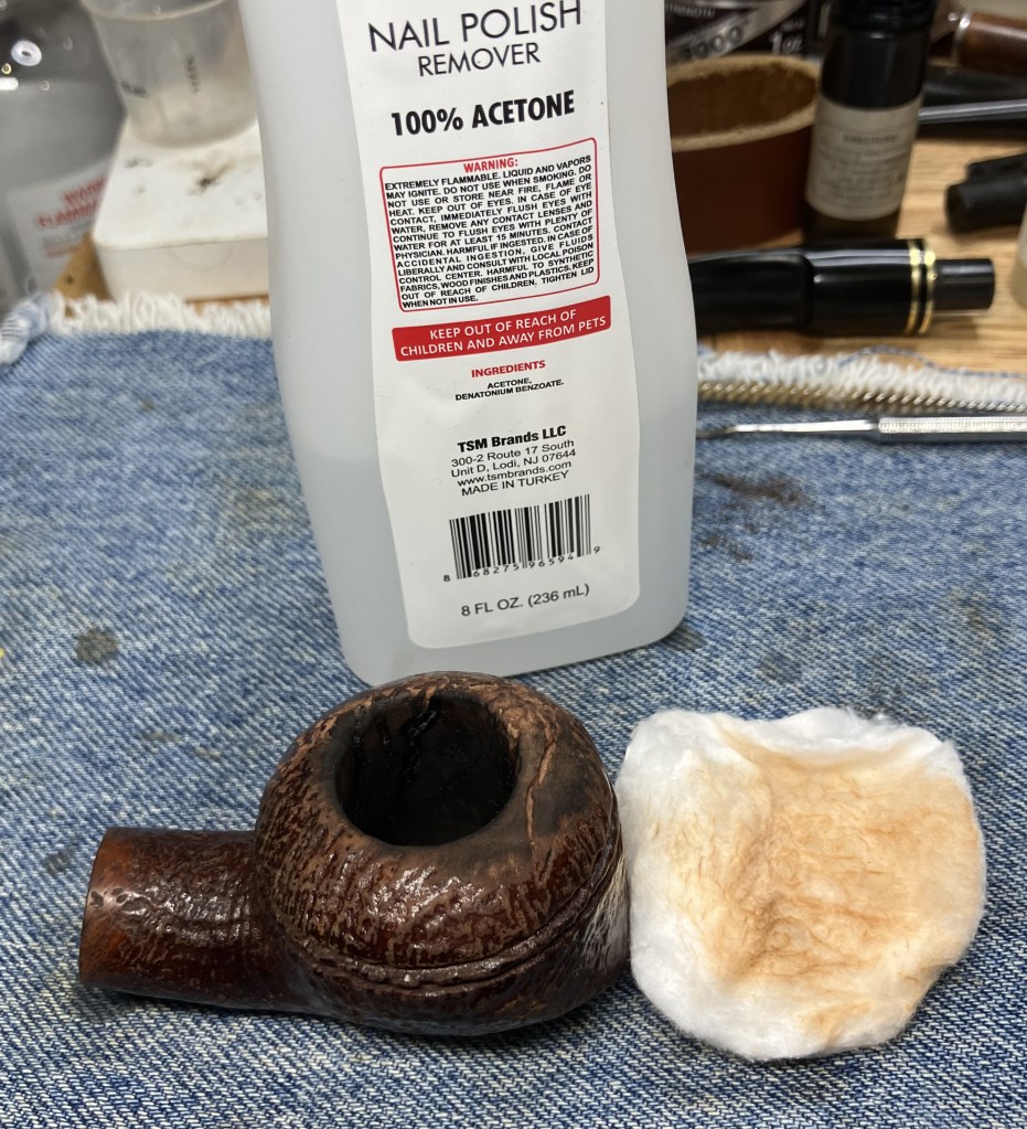 The stummel needed an overnight to fully cure. I turned my attention to the stem. I cleaned it with bristle pipe cleaners and 99% ethyl alcohol.