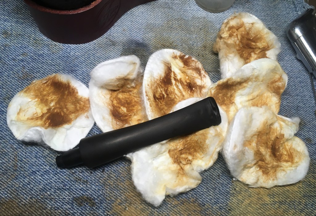 The pipe was then wiped, cleaning off the Restoration Balm with an inside out athletic sock.