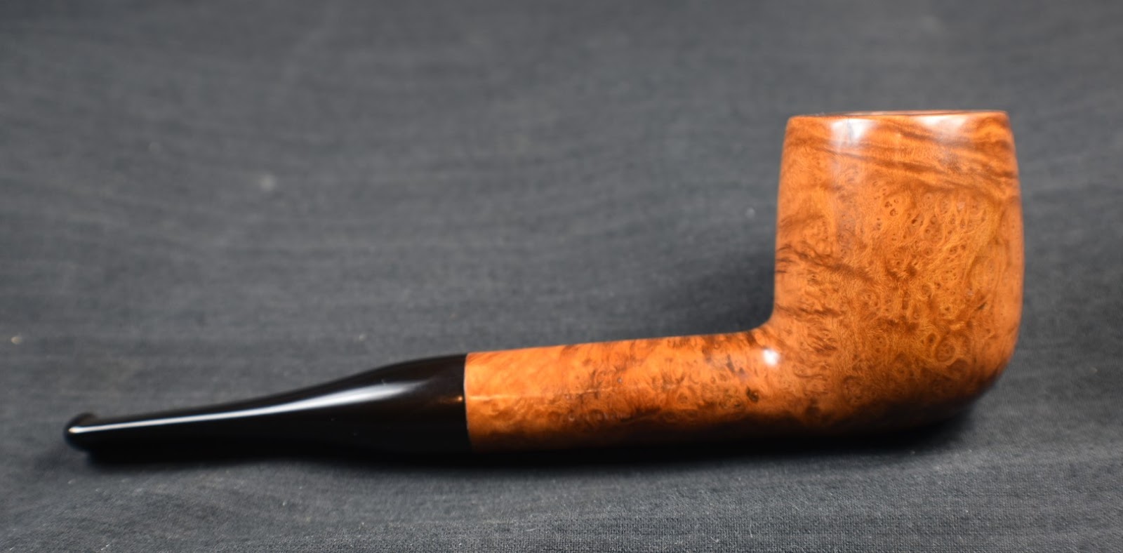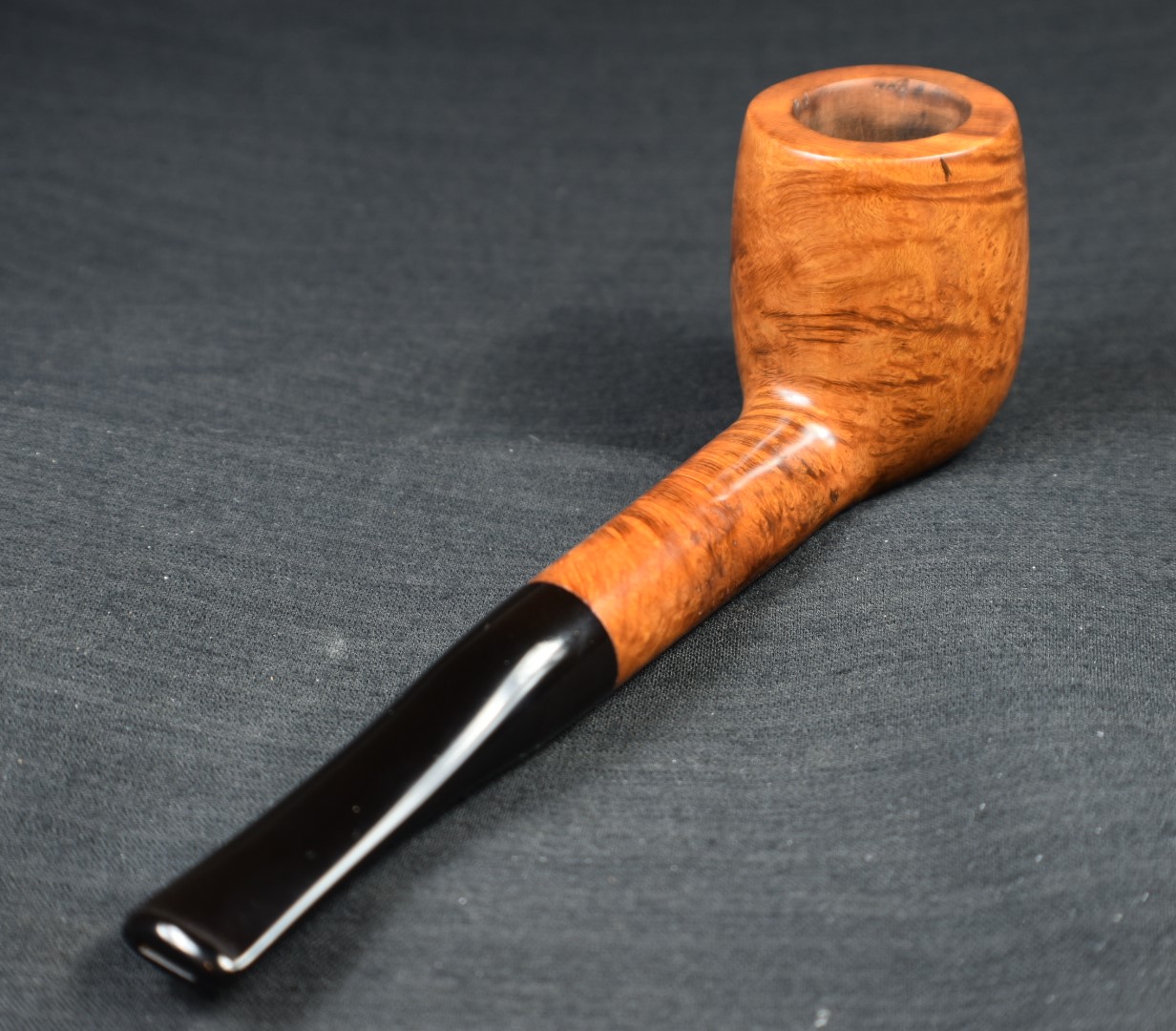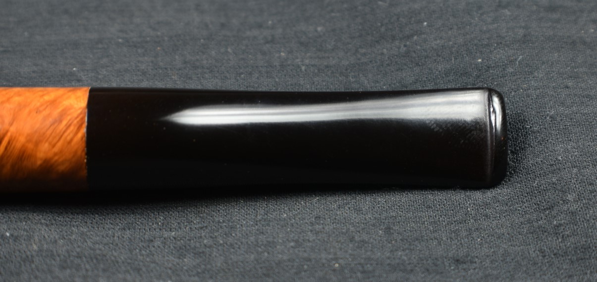 This pipe turned out very well. I really like how the contrast staining brought out the differences in the grain. It made the bird’s eyes stand out much better than I hoped it would. The stem polished up well. I still do not know exactly what the stem material is but it looks good and didn’t turn my lips black when I sampled the draw of the pipe. I do wish the stinger was intact though the draw is very nice without it. I am sure this will be a nice smoking pipe for someone who loves a long billiards. With it’s relatively tall and narrow tobacco chamber I expect it would make a fine Virginia or Virginia Perique blend pipe. The dimensions of this French beauty are: