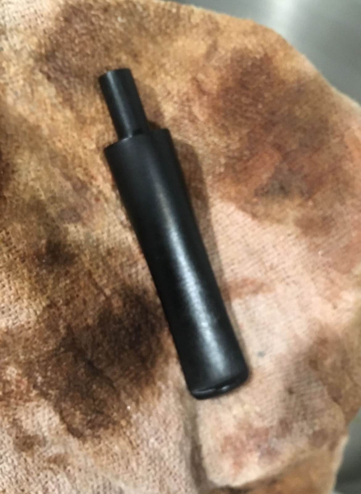 I turned my attention to the stem. The slightly over-clocked stem could have been adjusted a couple of different ways; by heating the aluminum threads until the rubber softened and then turning the aluminum slightly or to add a bead of black cyanoacrylate to the end of the stem. I chose the later as the overclocking was so slight. Here I sanded the stem from about its middle to the button with 320 and 400 grit sanding sponges.