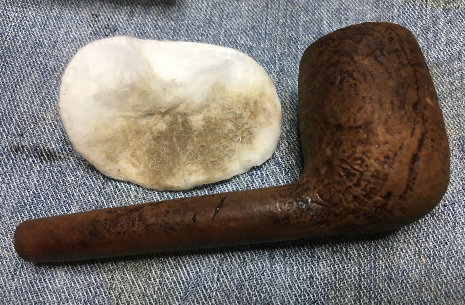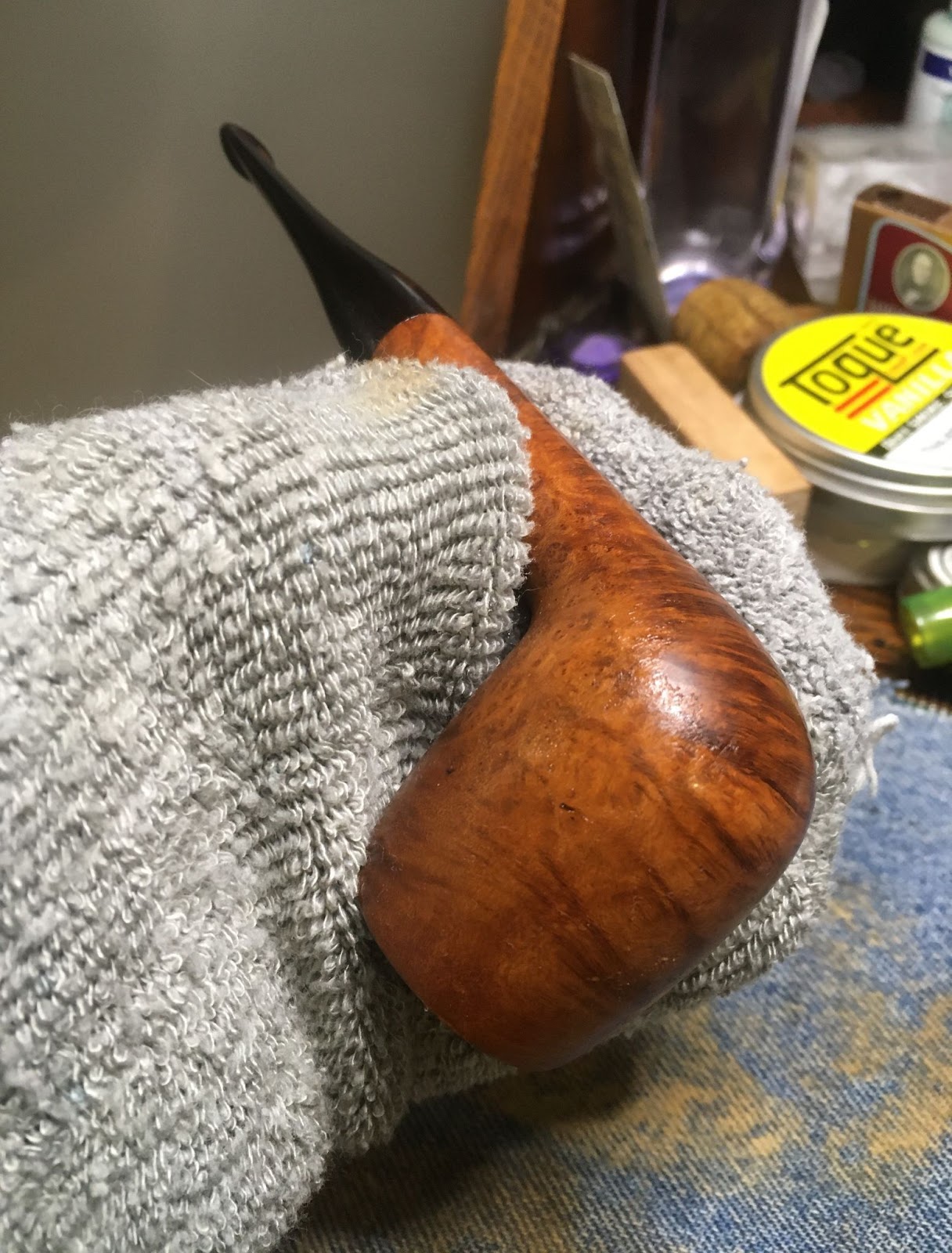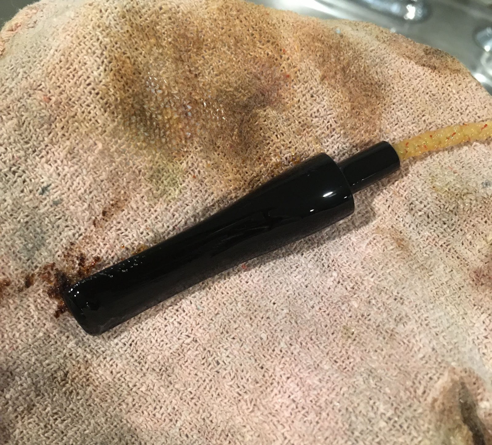 Below is the black dyed stummel, still wet with Fiebing’s Leather Dye.
