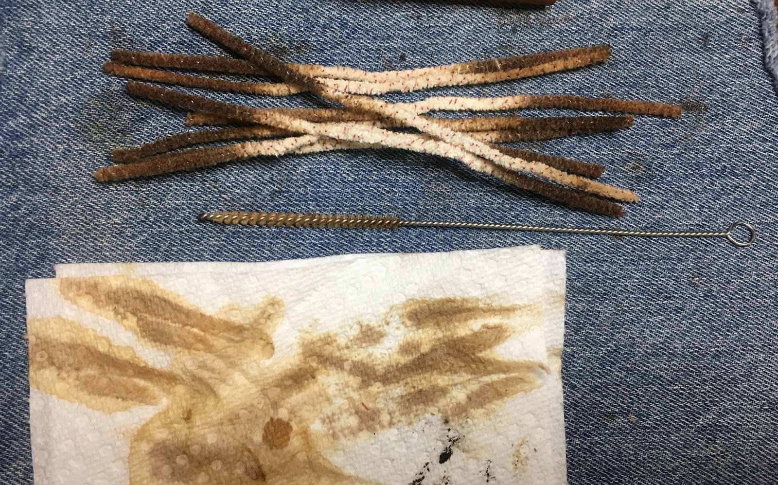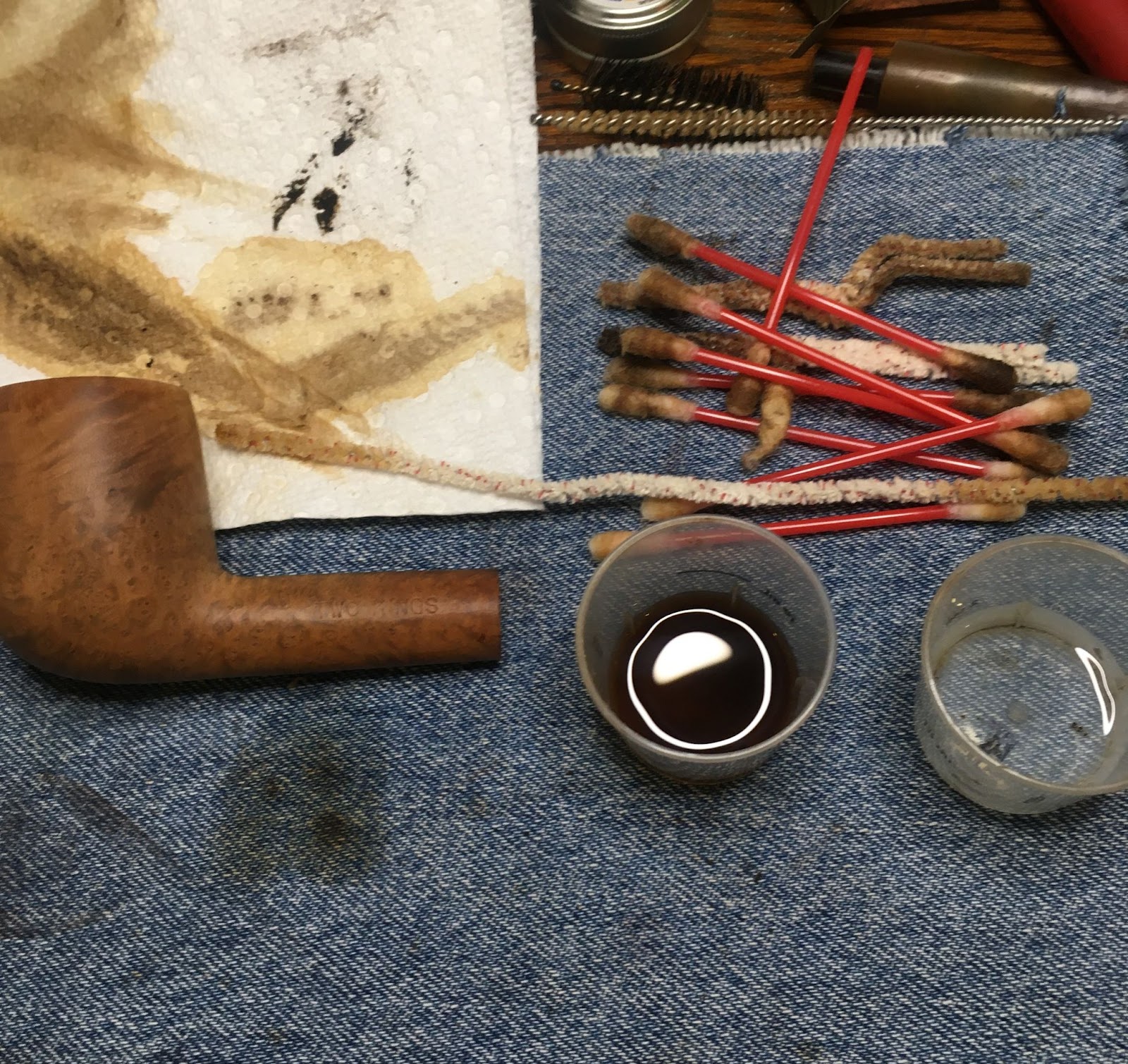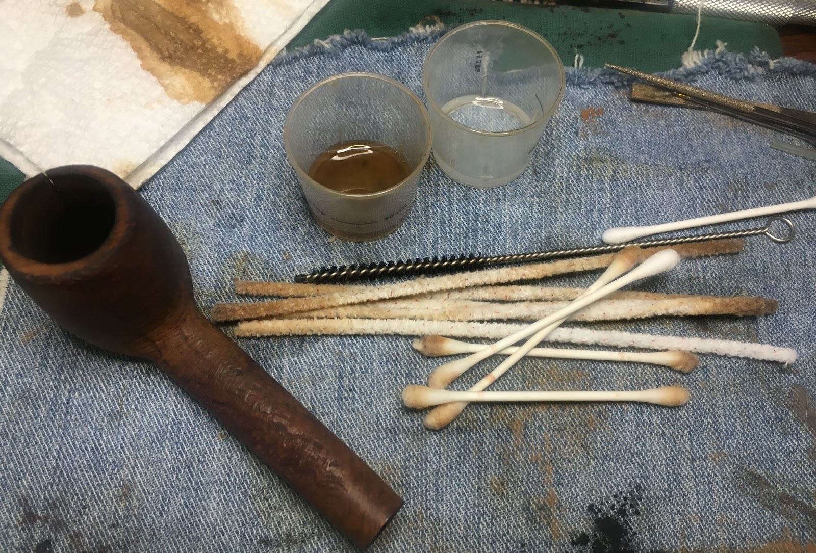 After the shank was cleaned I turned my attention to the stem. Here the ethyl alcohol and bristle pipe cleaners were used to clean the airway of the stem.