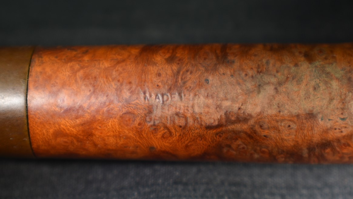 Now we can assume a bit of information about the date of production. Algeria had been a source of briar from the mid to late 1800s and into the early 1900s. During the years of World War Two briar production was severely limited. After the war briar production returned. Algeria was a French colony and like many colonies during the mid 20th Century, experienced a wave of anticolonialism. The French attempted to squelt this anticolonialism leading to the Algerian war of independence from 1954-1962. During this time Briar production from Algeria was greatly reduced. According to the Wikipedia.com article fatalities of the conflict were, “between 400,000 and 1,500,000 Algerians,[40][24][22] 25,600 French soldiers,[15]: 538 and 6,000 Europeans.” (https://en.wikipedia.org/wiki/Algerian_War).