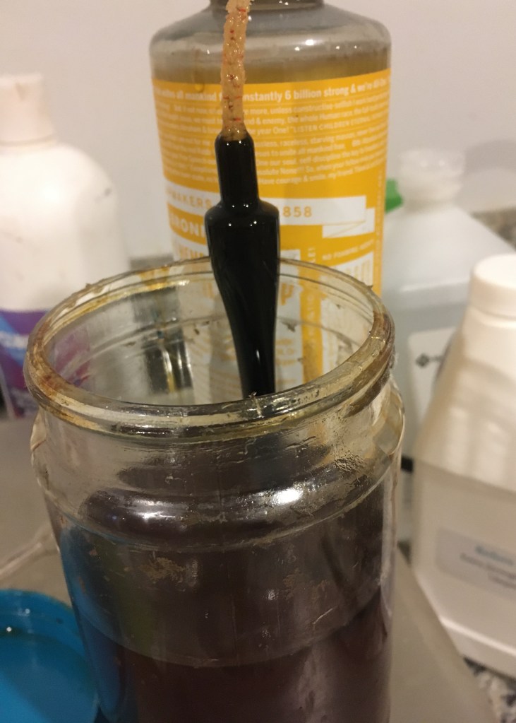 To make sure no coatings remained a wipe with a make-up pad with acetone was used. This time only a little bit of stain was present on the pad.