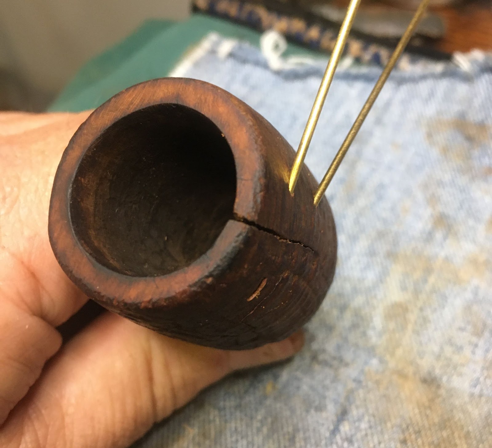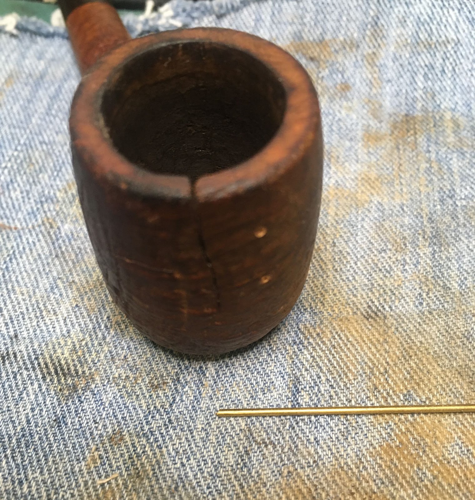 All of the scrubbing and wiping allowed me to see the pits and damage to the stummel. These would require a fill of brown cyanoacrylate (CA, super glue) and briar dust.