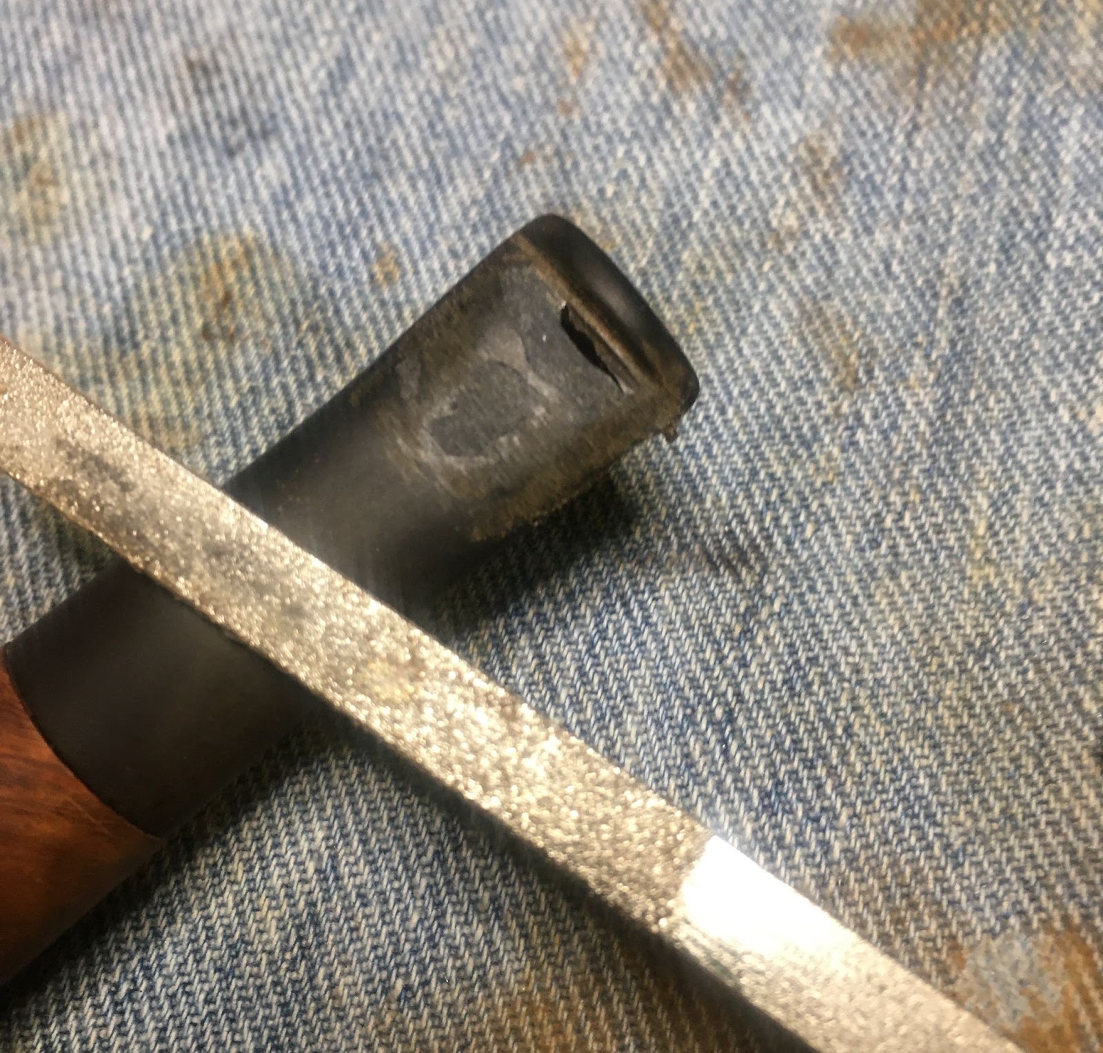 The new fill was filed with a flat diamond needle file to remove and smooth the fill then was sanded with a 400 grit sanding sponge.